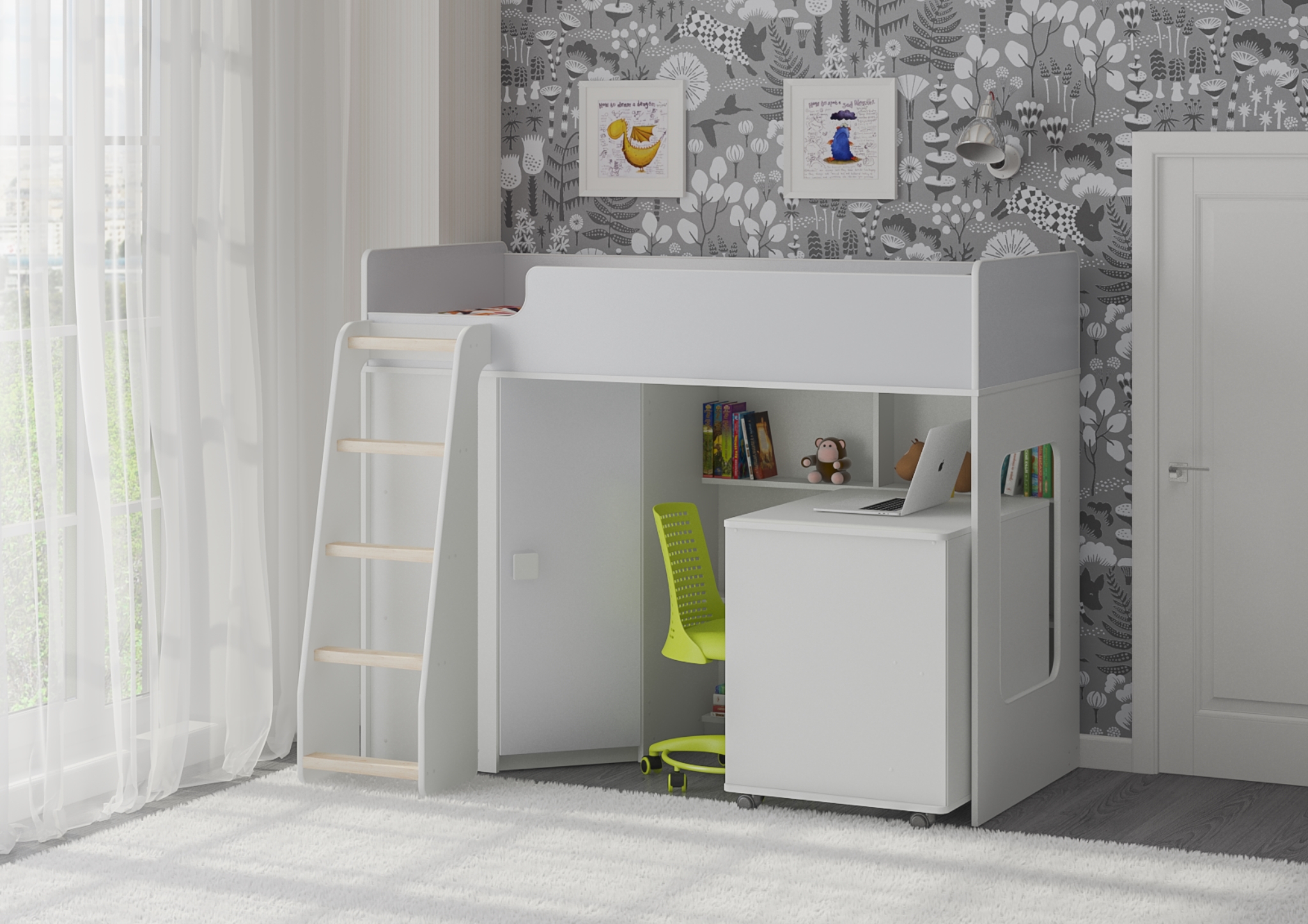 Высота кровати чердака всего 1405 мм, что легко позволит взрослым наблюдать за ребенком на кровати или достать что-то с верхнего яруса.