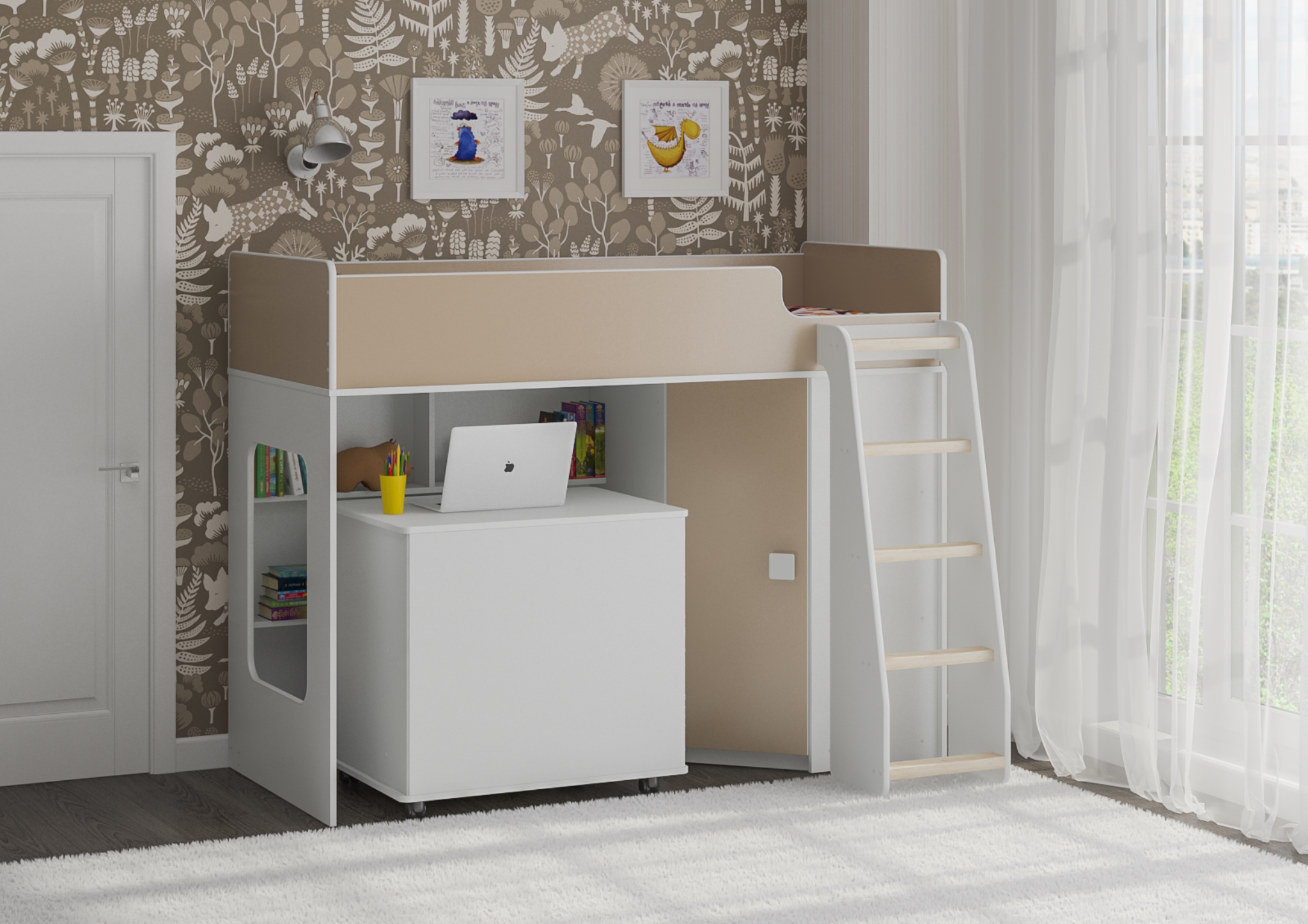 Высота кровати чердака всего 1405 мм, что легко позволит взрослым наблюдать за ребенком на кровати или достать что-то с верхнего яруса.