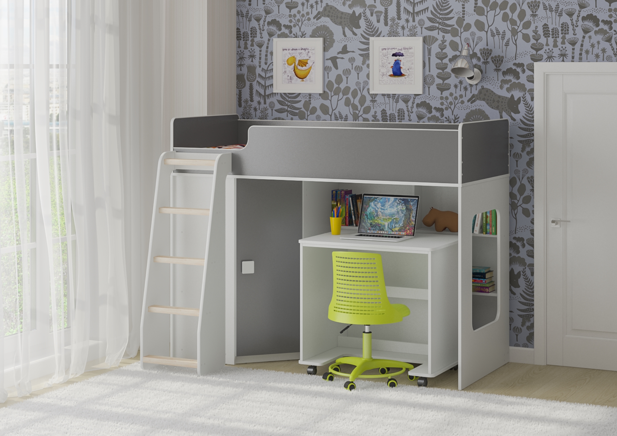 Кровать чердак Легенда 42.2.4 – великолепный комплект мебели с выдвижным столом.