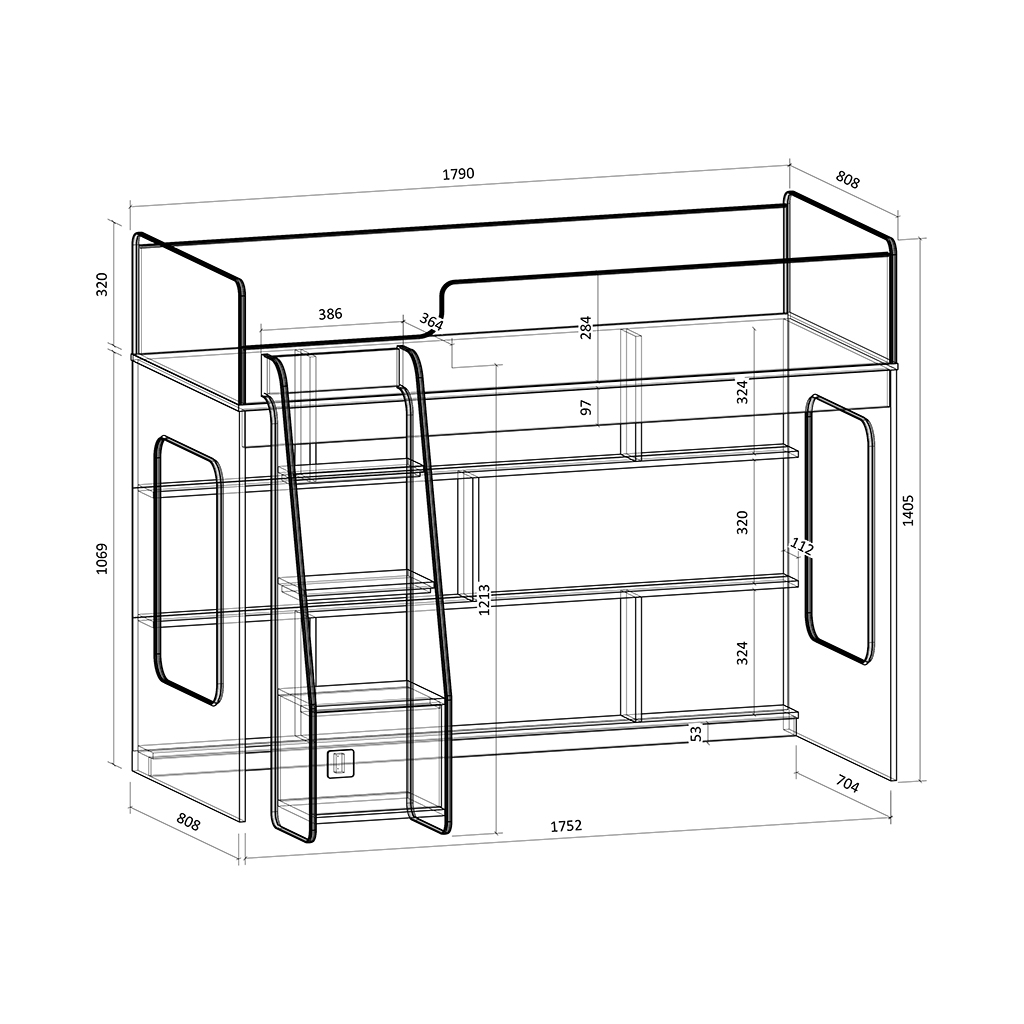 Высота кровати чердака всего 1405 мм, что легко позволит взрослым наблюдать за ребенком на кровати или достать что-то с верхнего яруса.