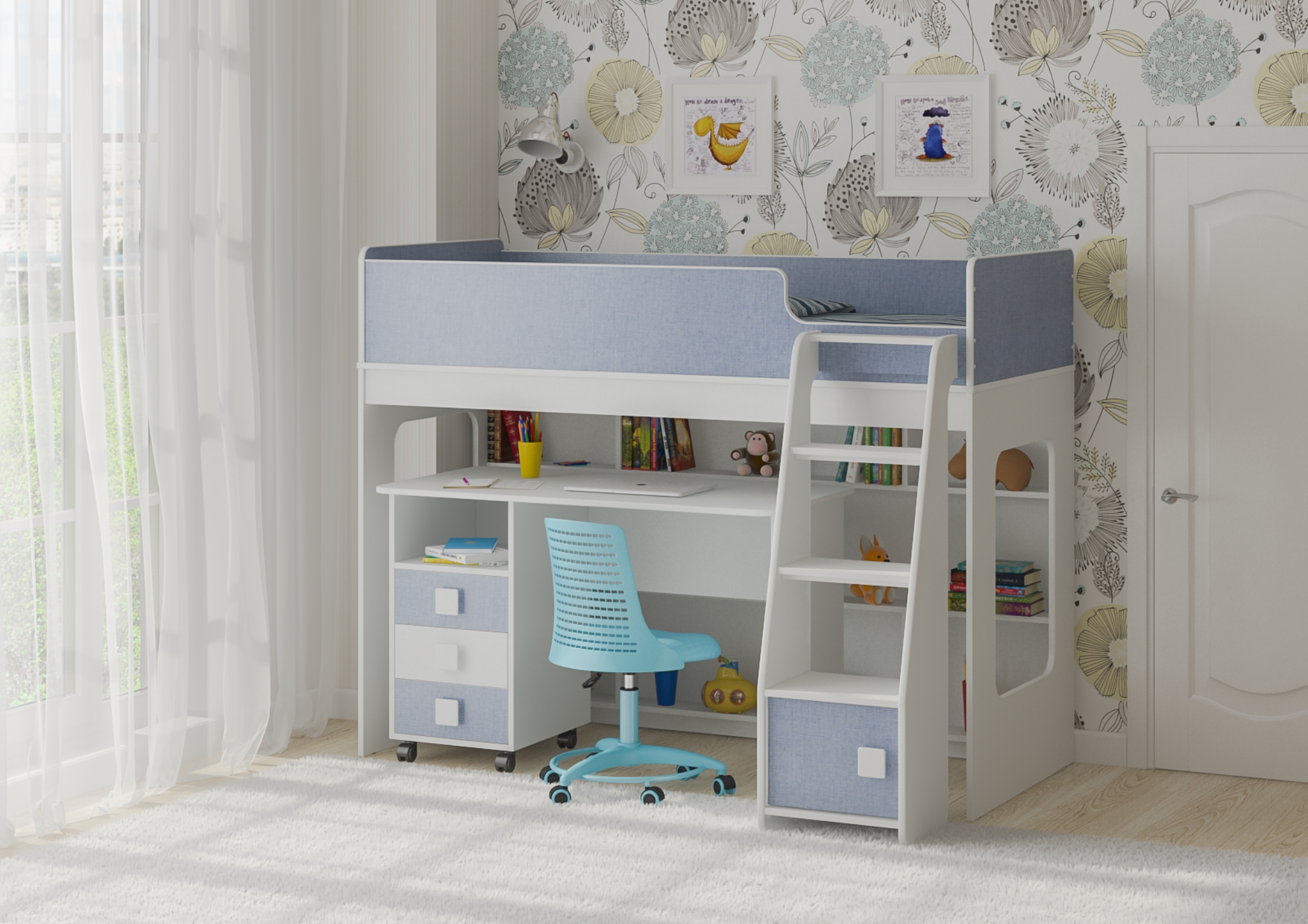 Высота кровати чердака всего 1405 мм, что легко позволит взрослым наблюдать за ребенком на кровати или достать что-то с верхнего яруса.