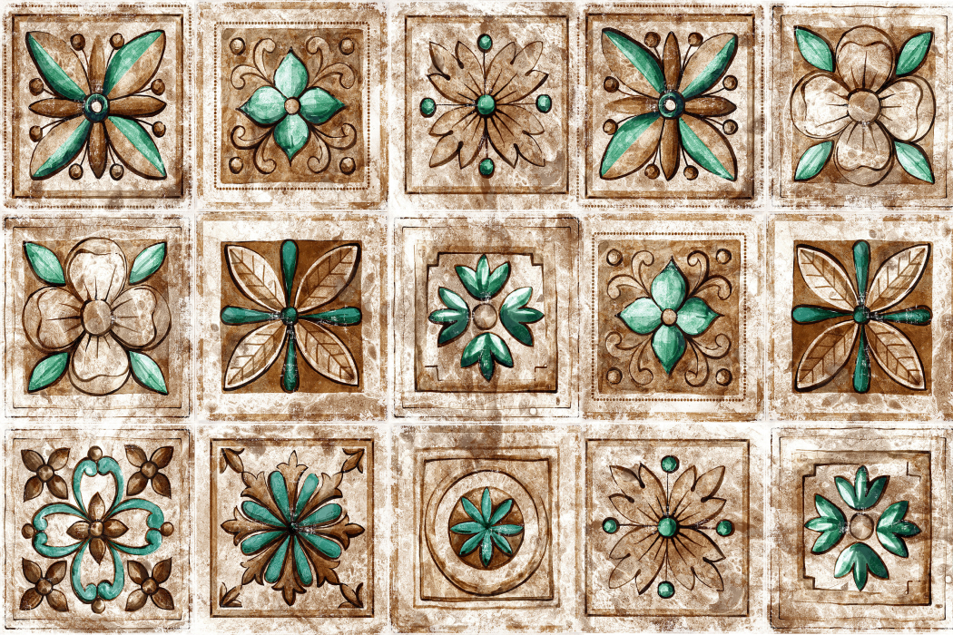 Интерьерная панель из стекла 900*600*6 мм MGF96_старинная_плитка Код I0000209113