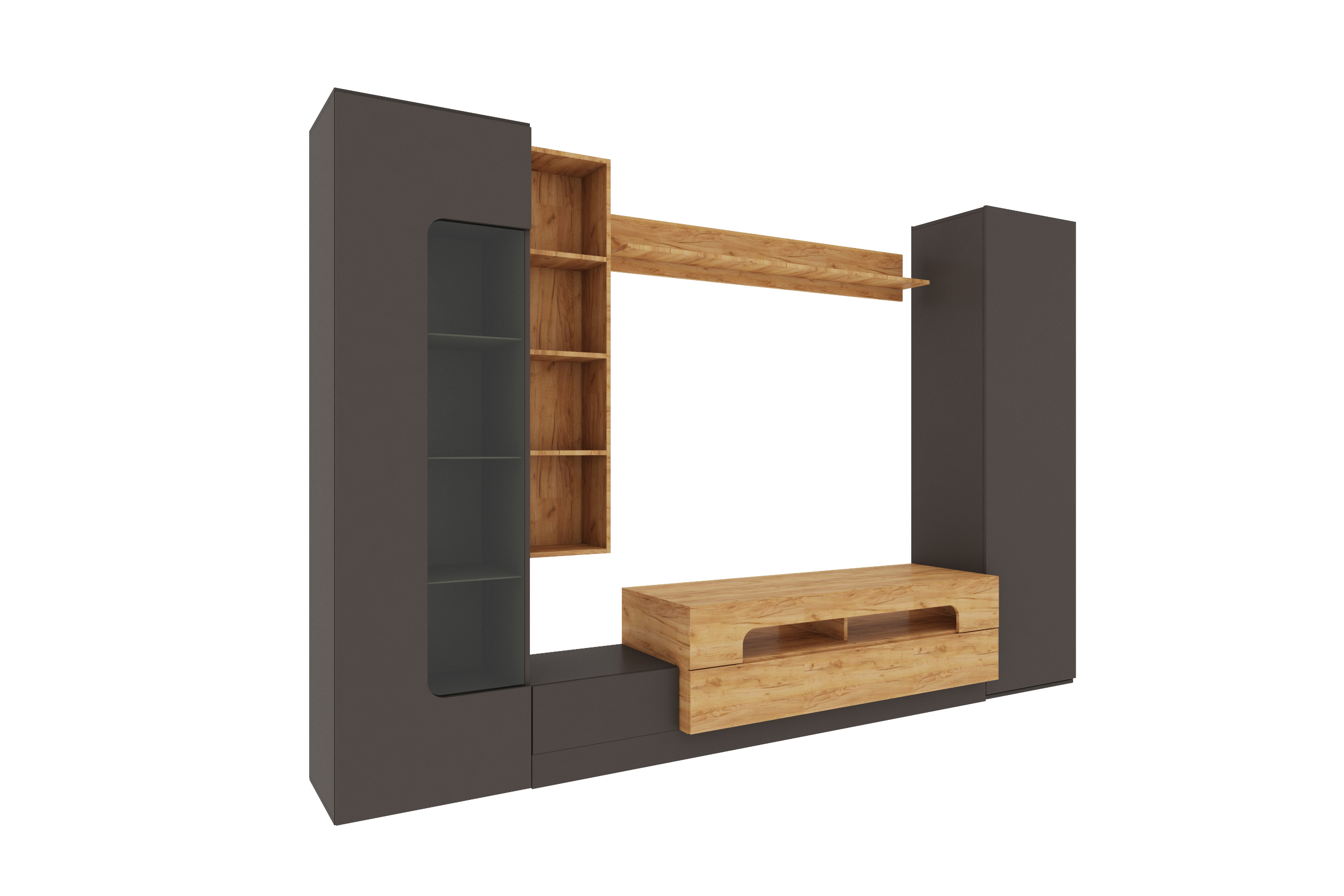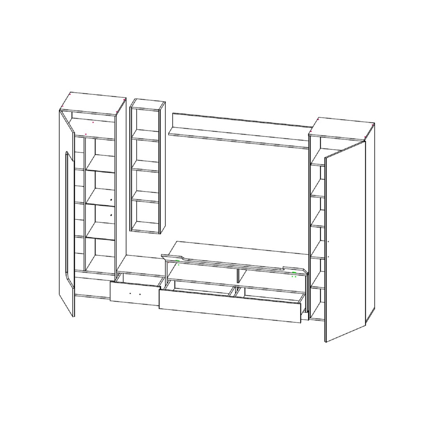 Очень удобный дизайн, много полок, все вмещается, также много места для телевизора. Понравилось и качество данной мебели - видно, что производилось из натуральных материалов,