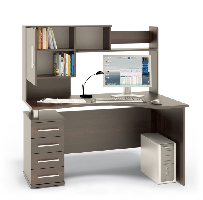 Обратите внимание! Стол может быть изготовлен в правостороннем и левостороннем исполнении (определяется по расположению тумбы). На рисунке изображен левосторонний стол. Задняя стенка у тумбы, шкафчика и полки в надстройке выполняется из ДВП серого цвета.