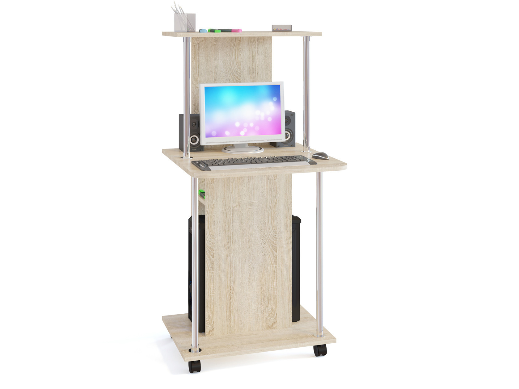 Оригинальный компьютерный стол на колесиках. За таким столом Вы можете работать как с ноутбуком, так и за стационарным компьютером. За центральной стойкой предусмотрено место для системного блока.
