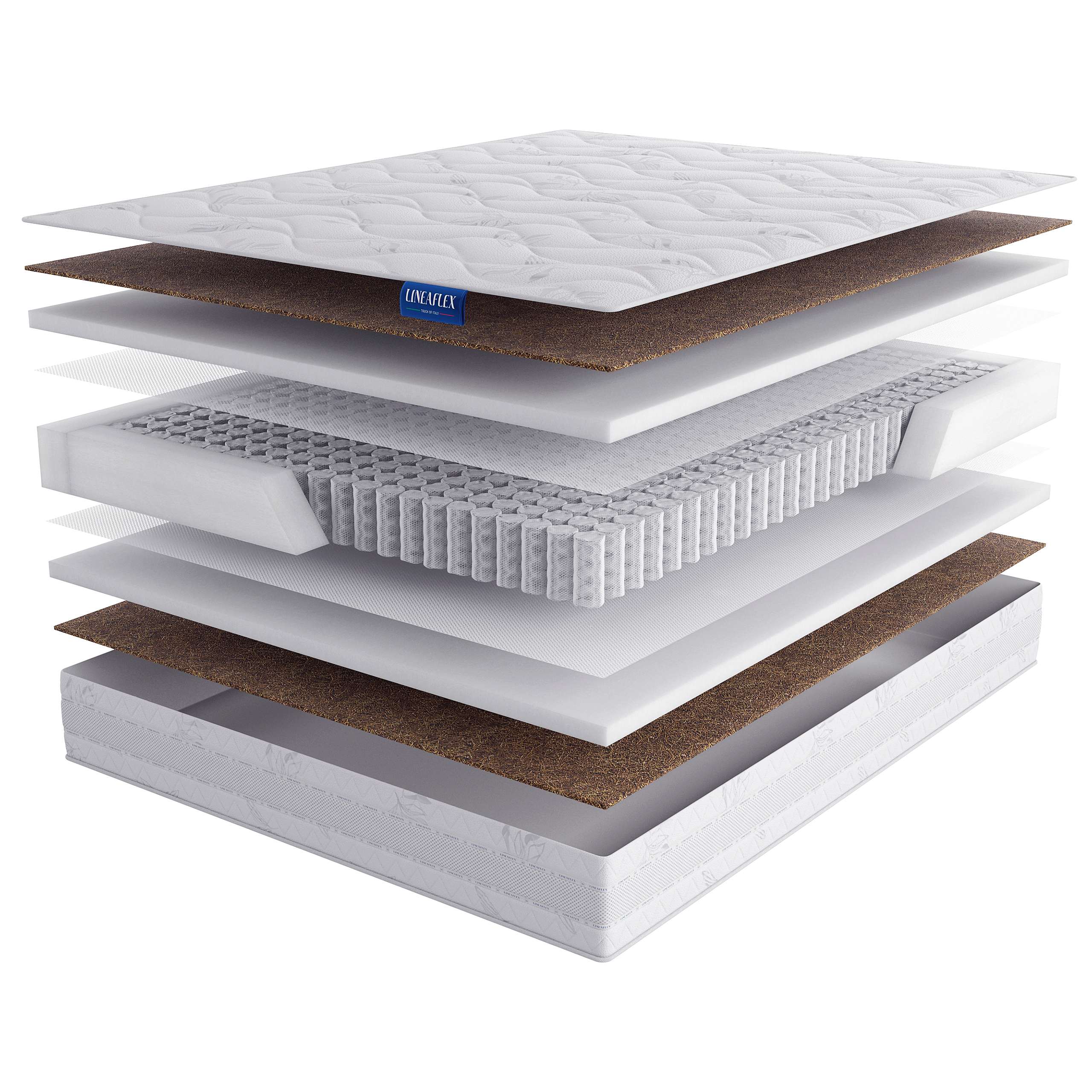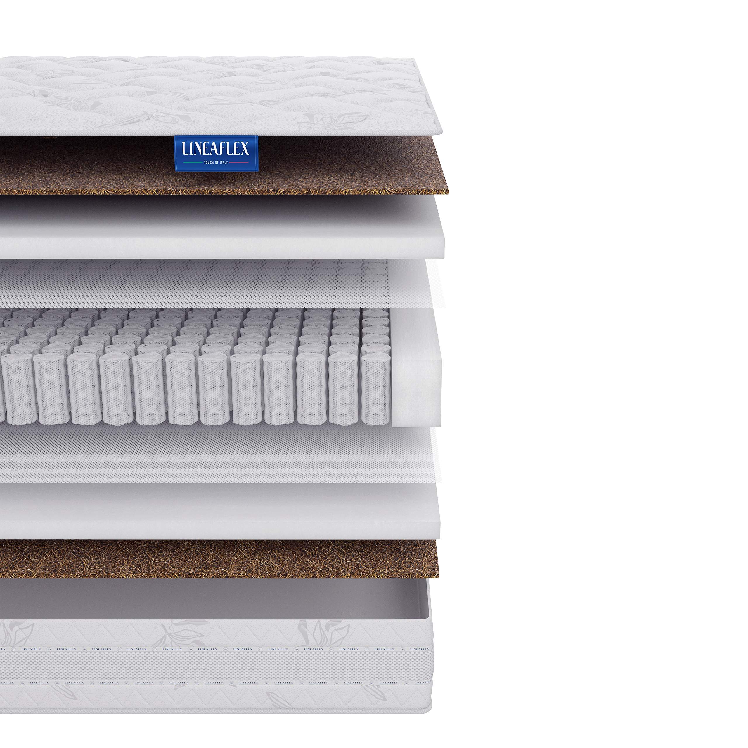 Чехол состоит из трикотажного гипоаллергенного полотна, простёганного на 400гр файбера. Файбер обеспечивает высокую теплоизоляцию и не слеживается. Является экологически чистым и нетоксичным, не впитывает влагу и запах, не поддерживает горение, способствует длительной эксплуатации. Боковины матраса прошиты 3D лентой LINEAFLEX. Она создает беспрепятственное движение воздуха по всему матрасу, позволяя устранить избыточное тепло и влагу, предотвращает скапливание пыли и защищает матрас от пылевых клещей, вредных бактерий и микроорганизмов.