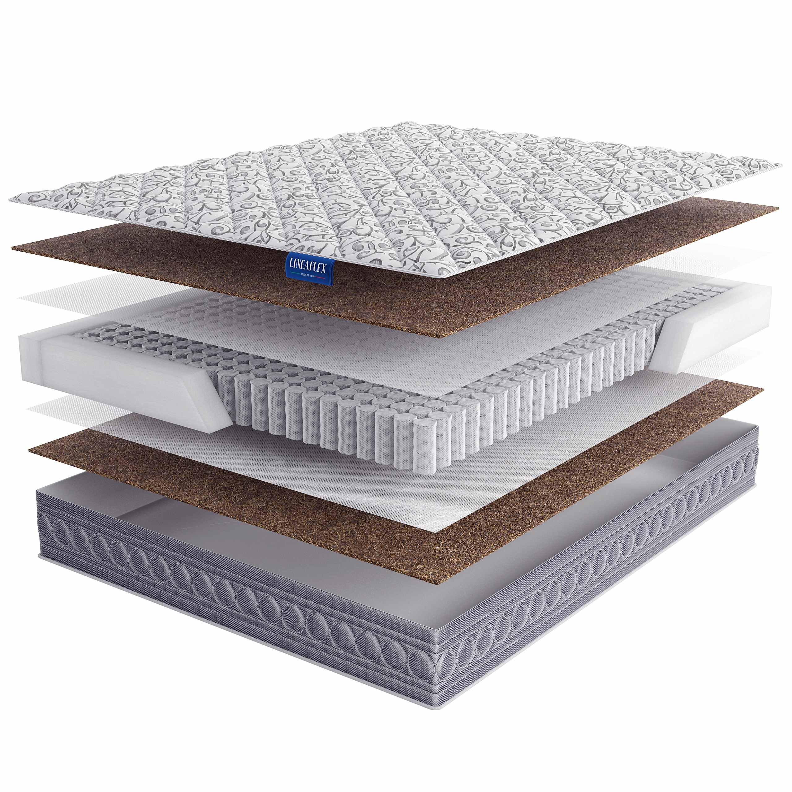 Матрас Lineaflex Loreto 800x2000. Ортопедический матрас на основе армированного блока независимых пружин плотностью 256 пружин на м² (500 пружин на спальное место). Каркас из ППУ создает боковую поддержку, защищает пружинный блок от внешних воздействий и не позволяет ему изменять местоположение внутри матраса во время нагрузок.