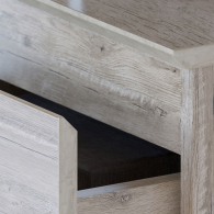 Для изготовления комода используется ЛДСП толщиной 16 мм. Задняя стенка и дно ящиков произведены из ДВП. Модель оснащена роликовыми направляющими.