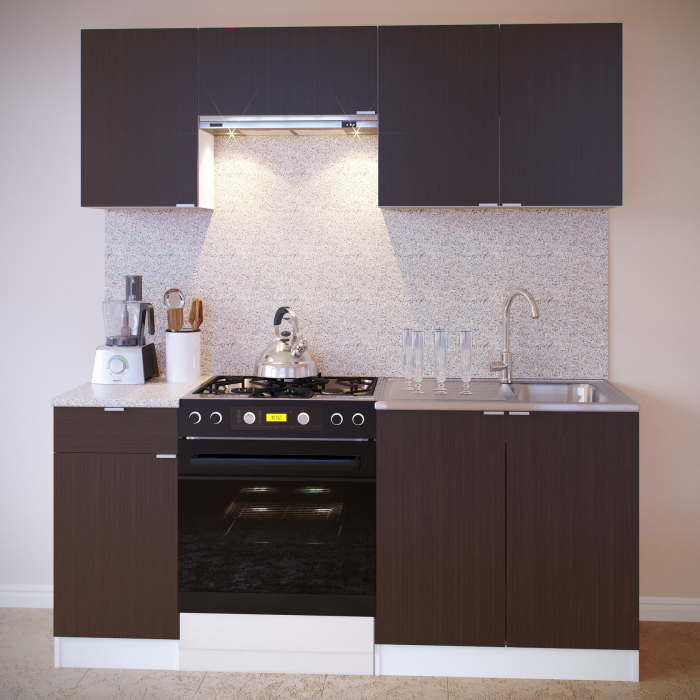 Ширина гарнитура с учетом установки плиты и вытяжки — 1800 мм.
