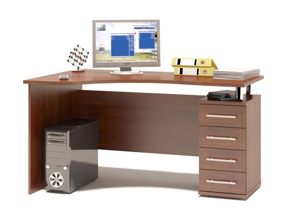 Эргономичный компьютерный стол КСТ-104.1 с тумбой с выдвижными ящиками. Столешница имеет удобный плавный изгиб и изготовлена из высококачественного ДСП отечественного производства толщиной 22 мм, отделана кромкой ПВХ 2 мм. Стол позволит организовать полноценное и удобное место для работы.
