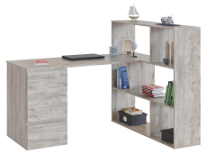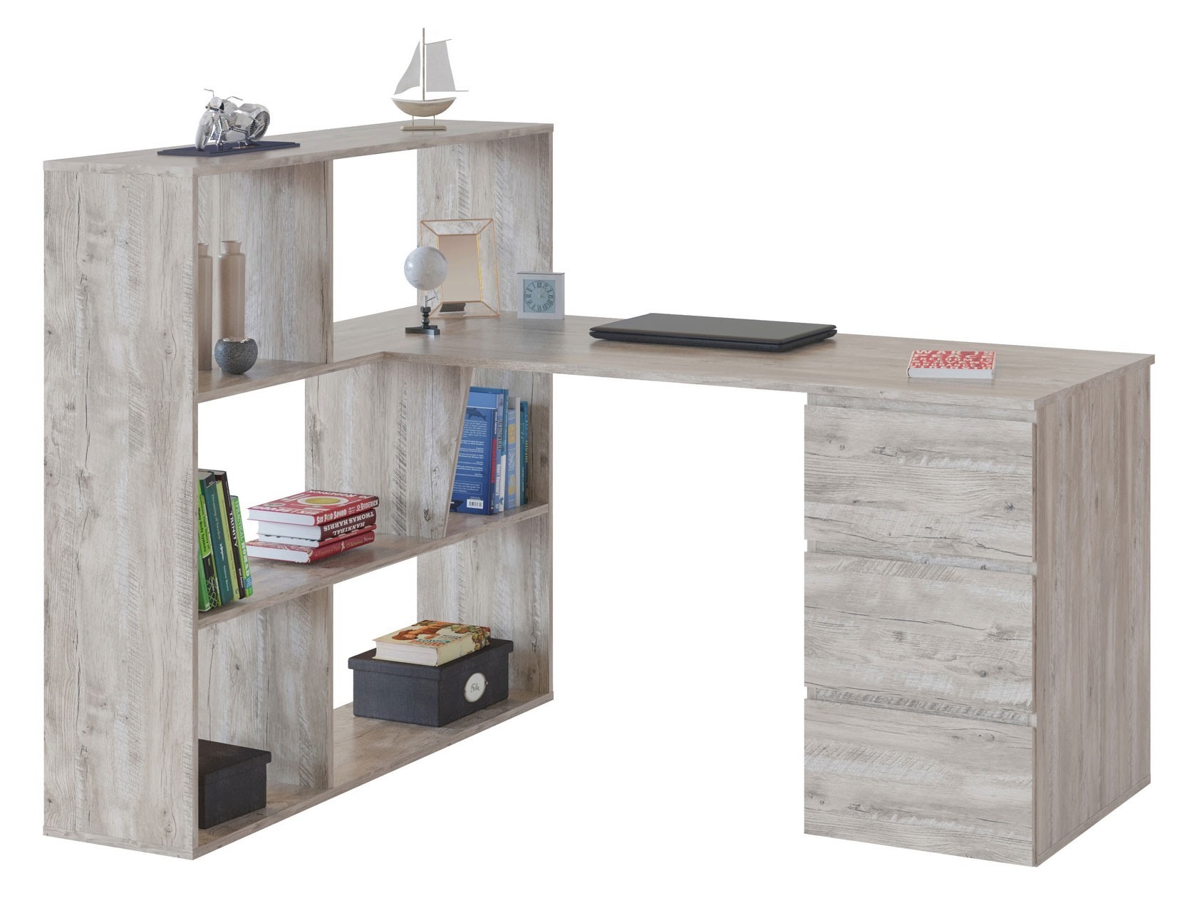 вместительность — модель оснащена стеллажом и тумбой с ящиками для удобного хранения всех необходимых для работы или учебы предметов;