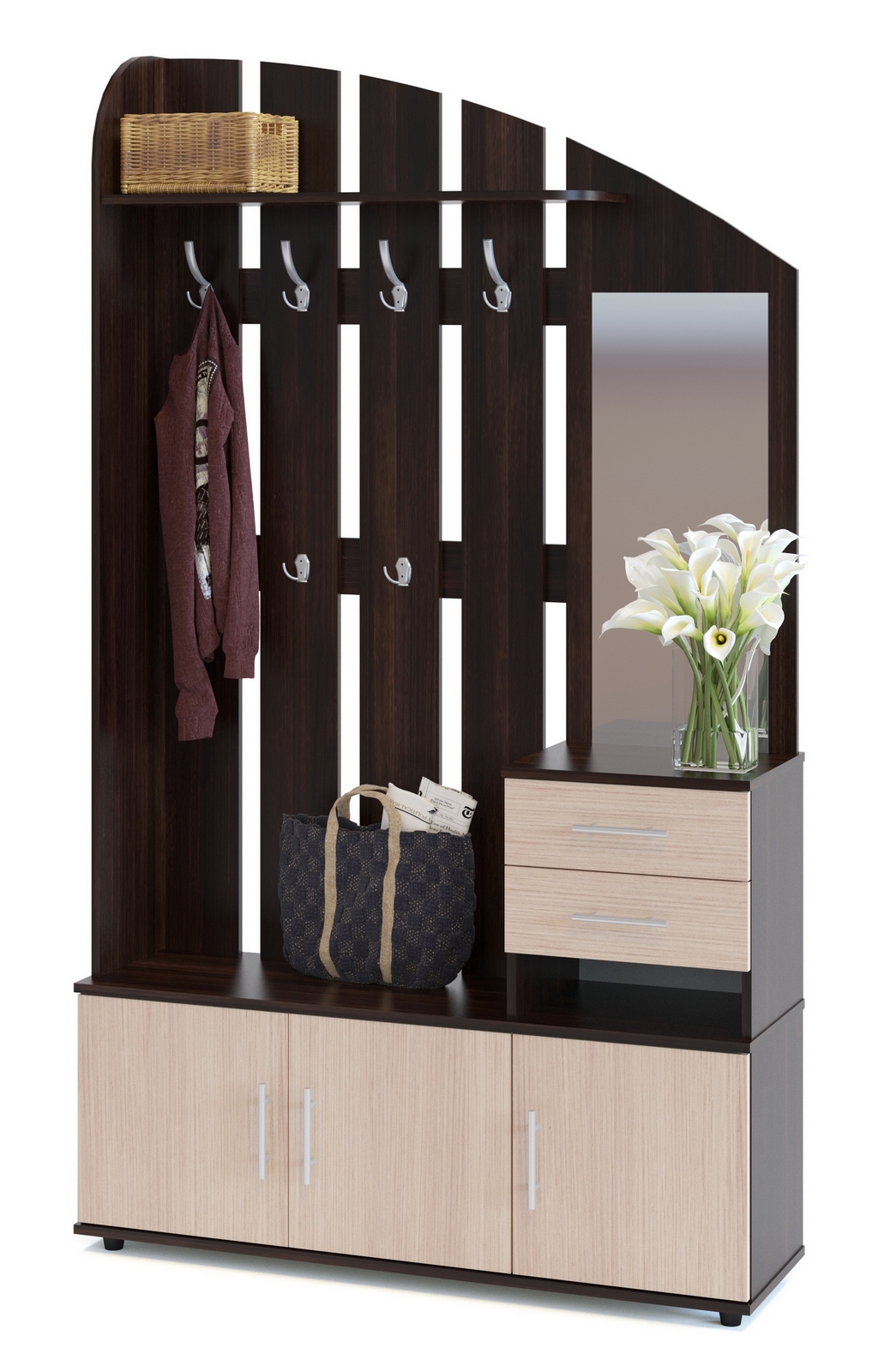 Удобная прихожая ВШ-2.2 с отделением для обуви, головных уборов, зеркалом и двумя ящиками. Ручки металлические.