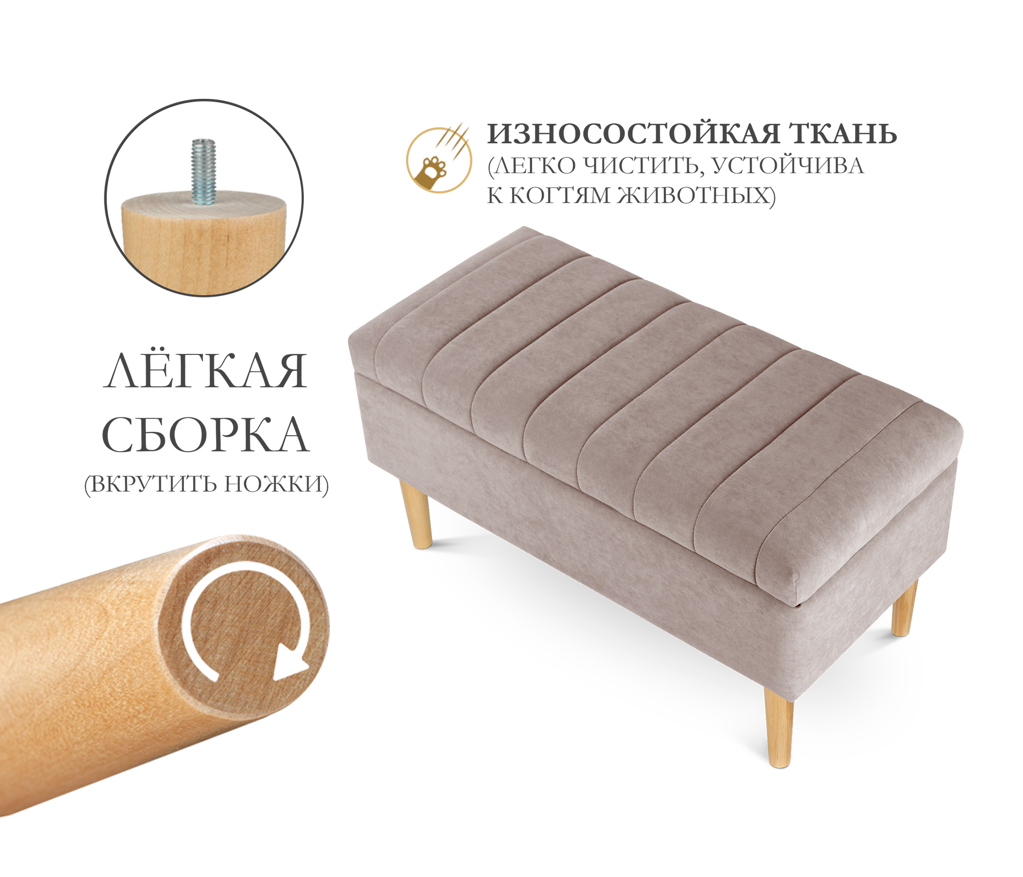Многофункциональность: Такой пуф может служить как удобное сиденье, так и место для хранения вещей – от пледов до игрушек.