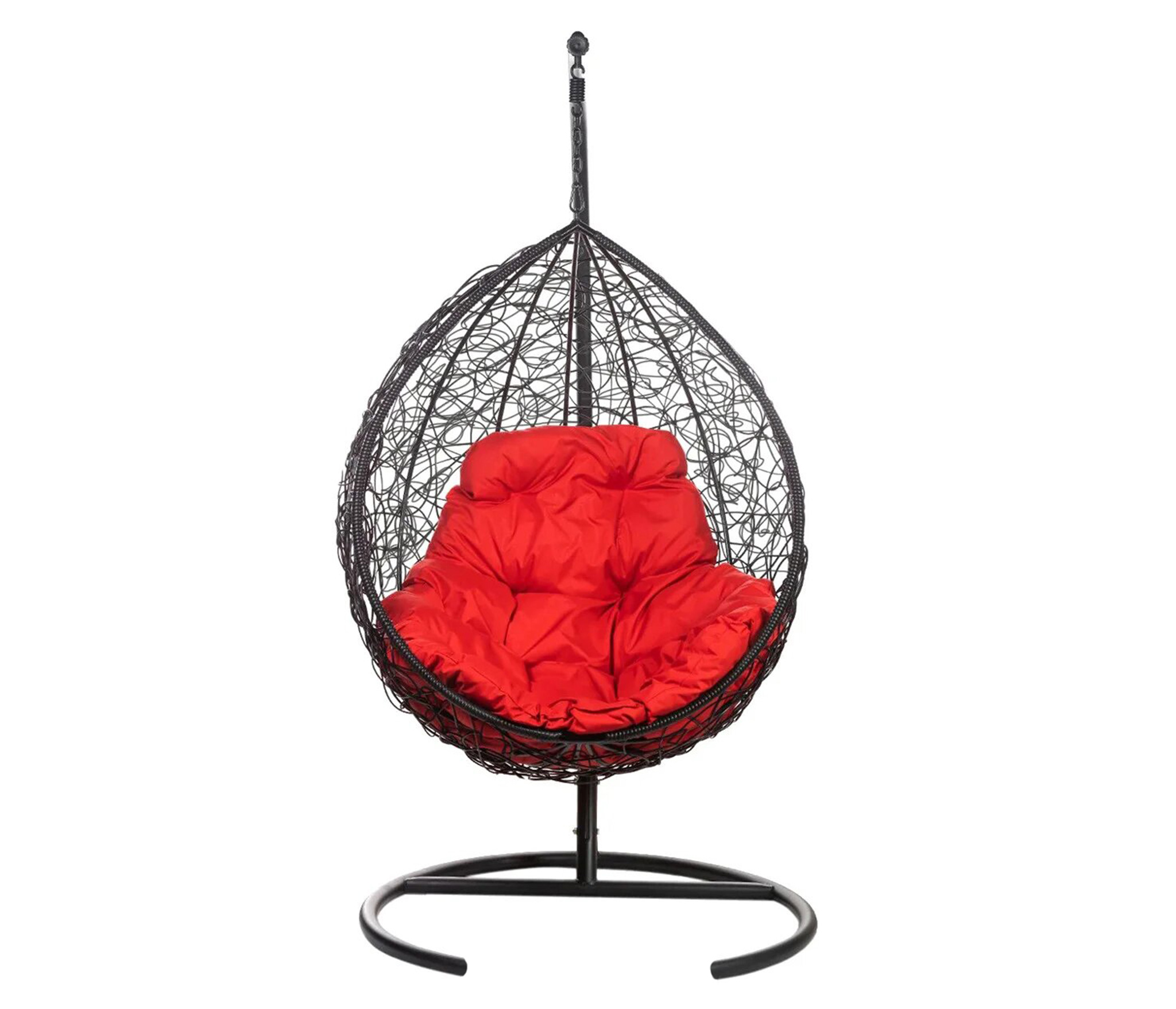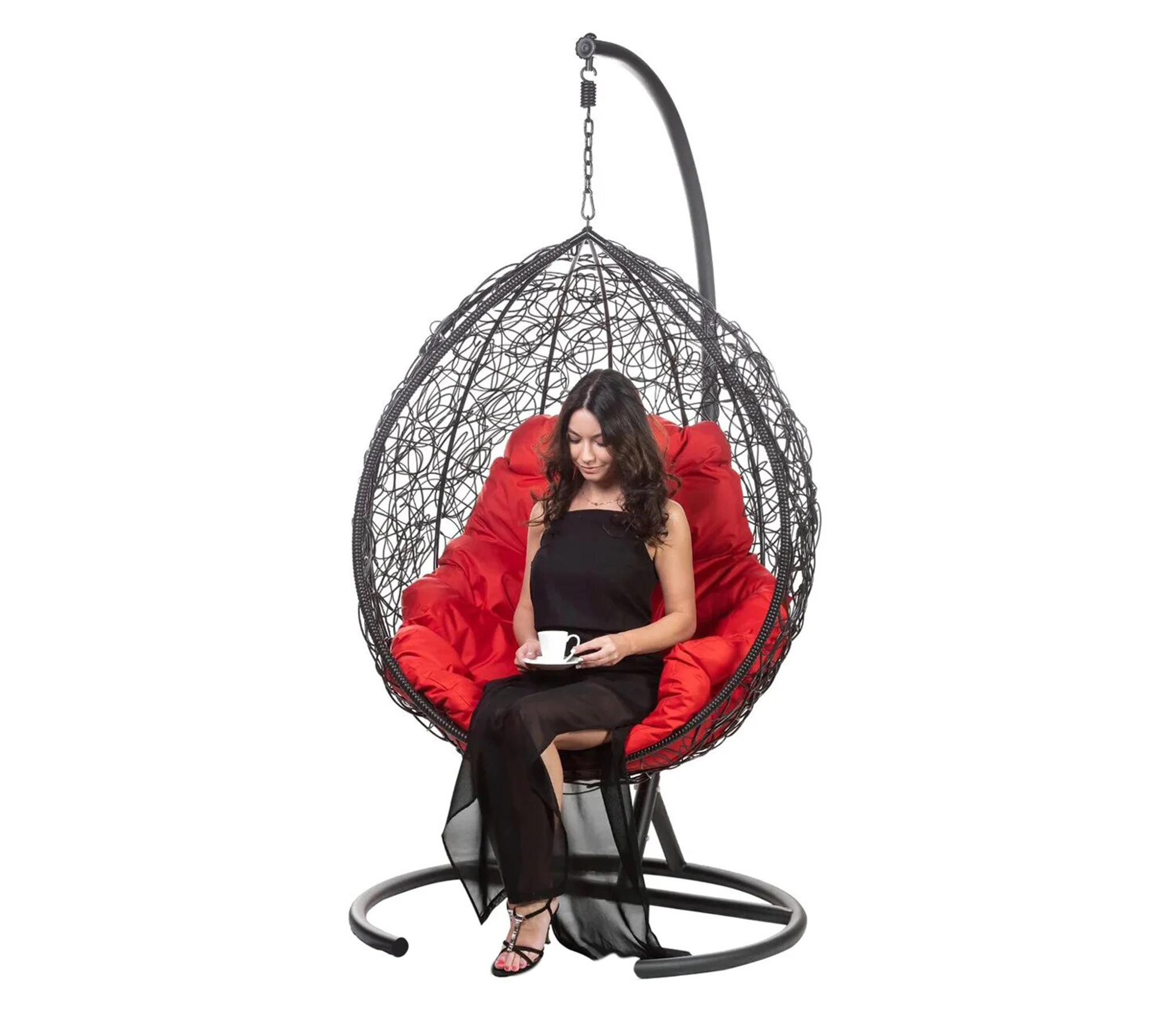 Подвесное кресло в виде капли "Tropica Black" красная подушка