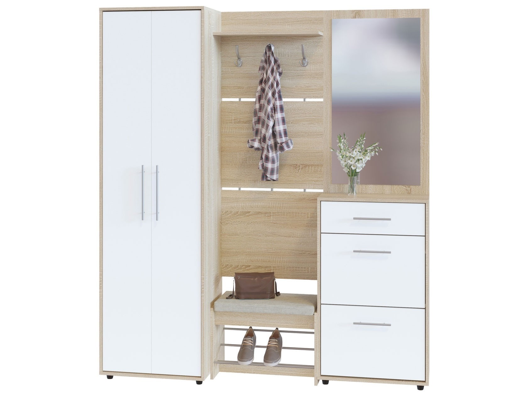 Все компоненты прихожей независимы друг от друга и могут быть расположены в любом порядке.