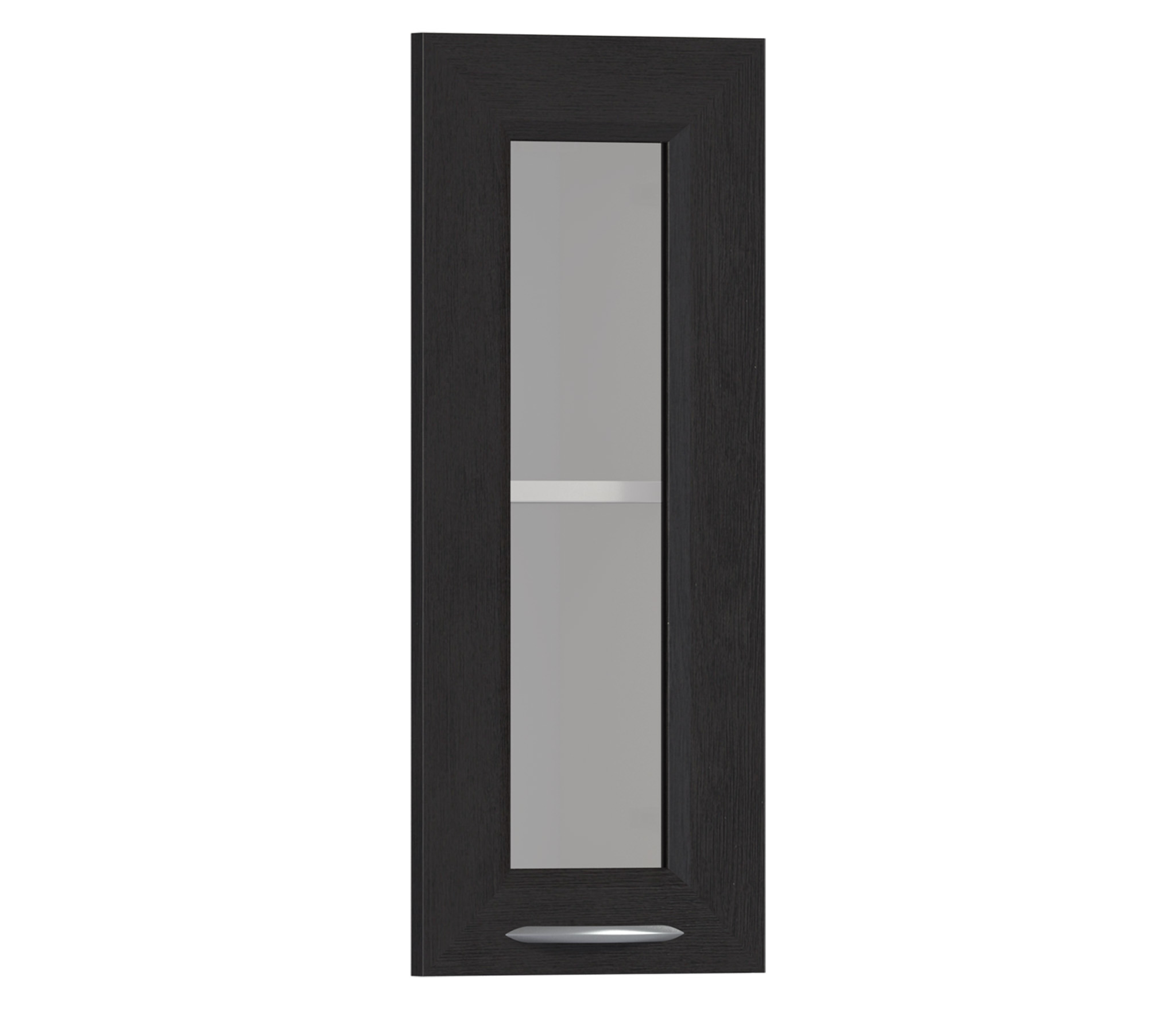 Компактная застекленная дверца для кухонного шкафа. Она открывается справа налево. Она выполнена из качественной прессованной древесины и каленого стекла. Можно выбрать дверцу цвета «дуб Ривер» или «вишня Барселона».