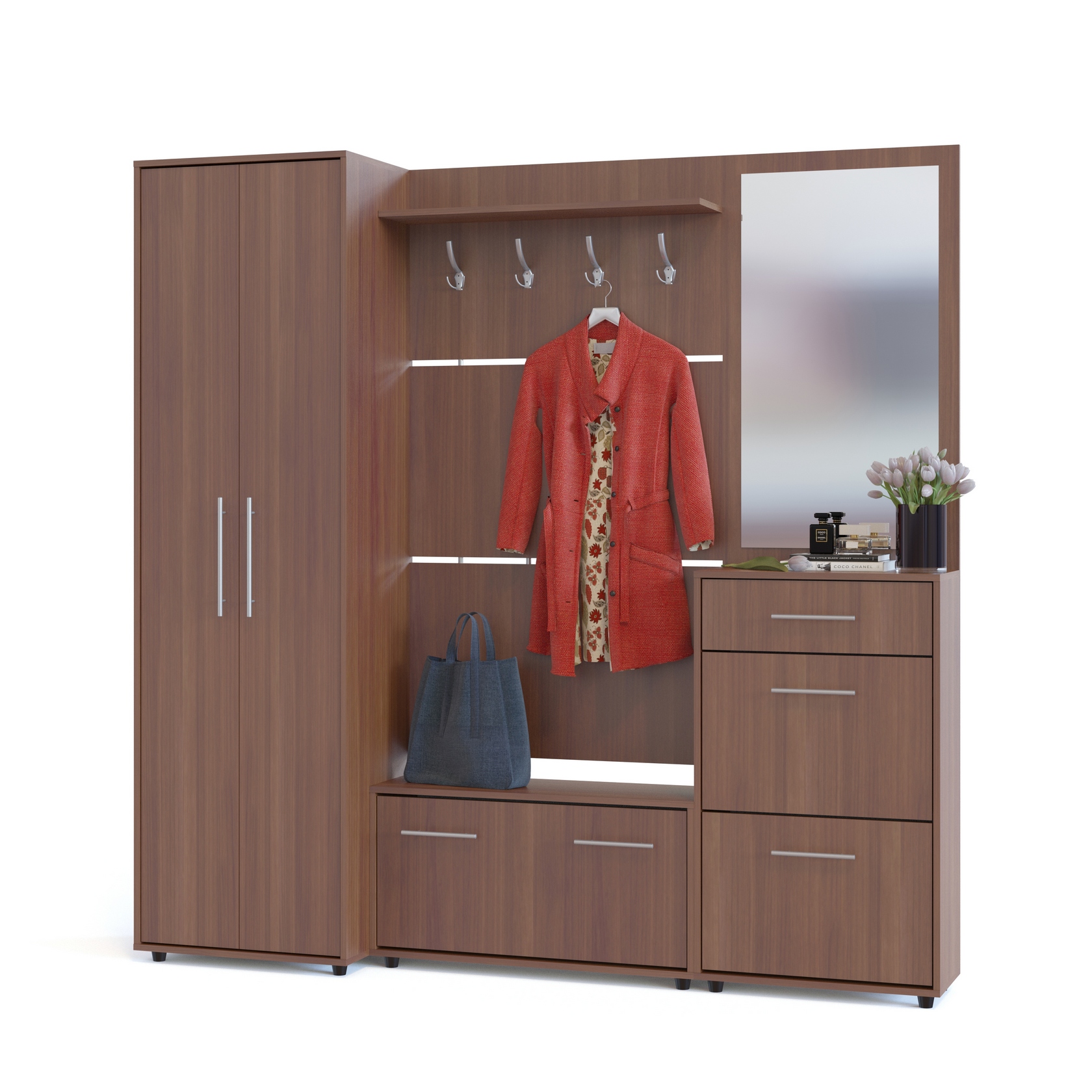 Прихожая изготовлена из высококачественной ДСП 16 мм, края отделаны кромкой ПВХ 0,4 мм.