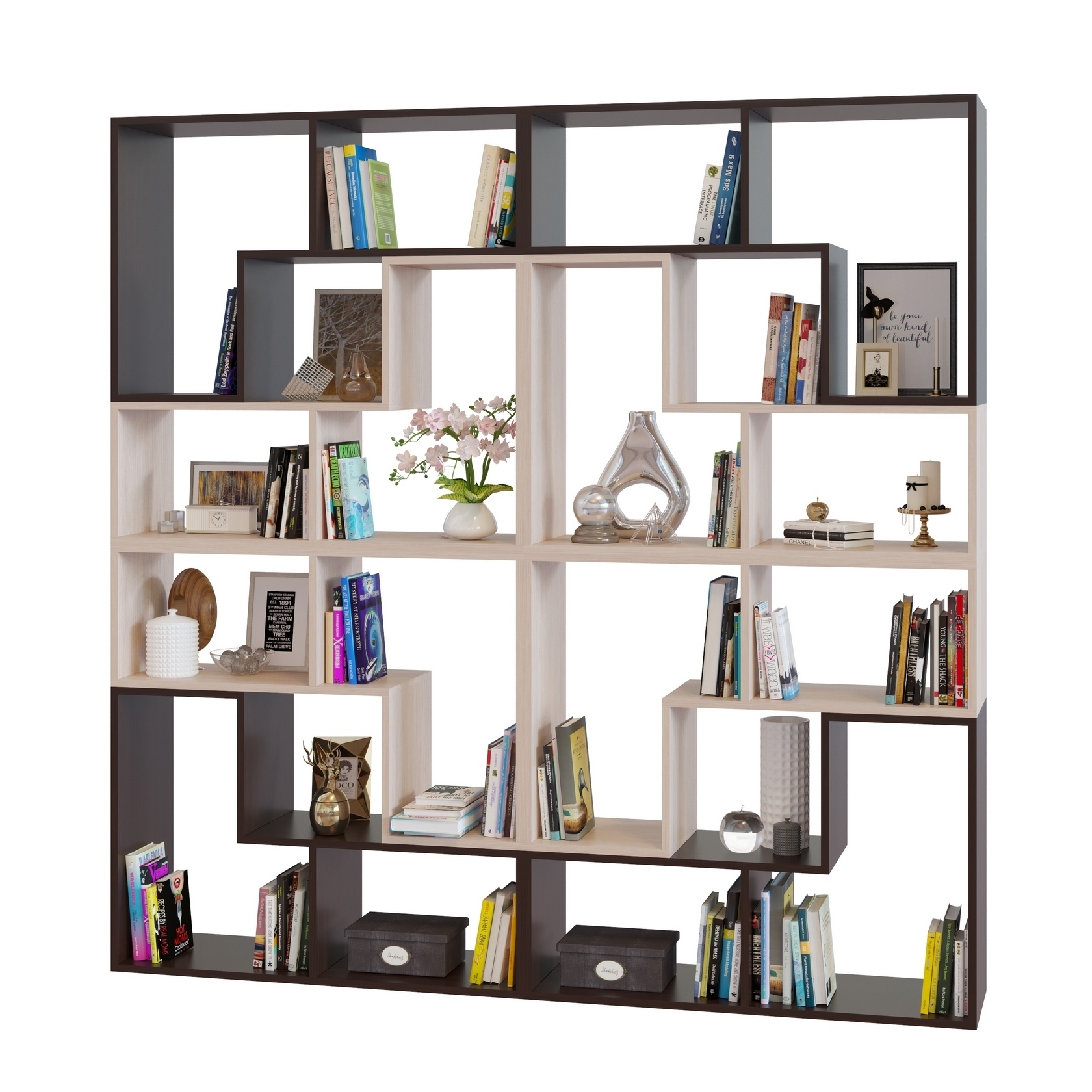 Собрать представленный стеллаж можно из модульных элементов четырех цветов: Венге, Беленый дуб, Белый и Дуб сонома: в однотонном варианте или комбинируя цвета. При заказе требуется указать сколько элементов какого цвета понадобится для создания уникального стеллажа.