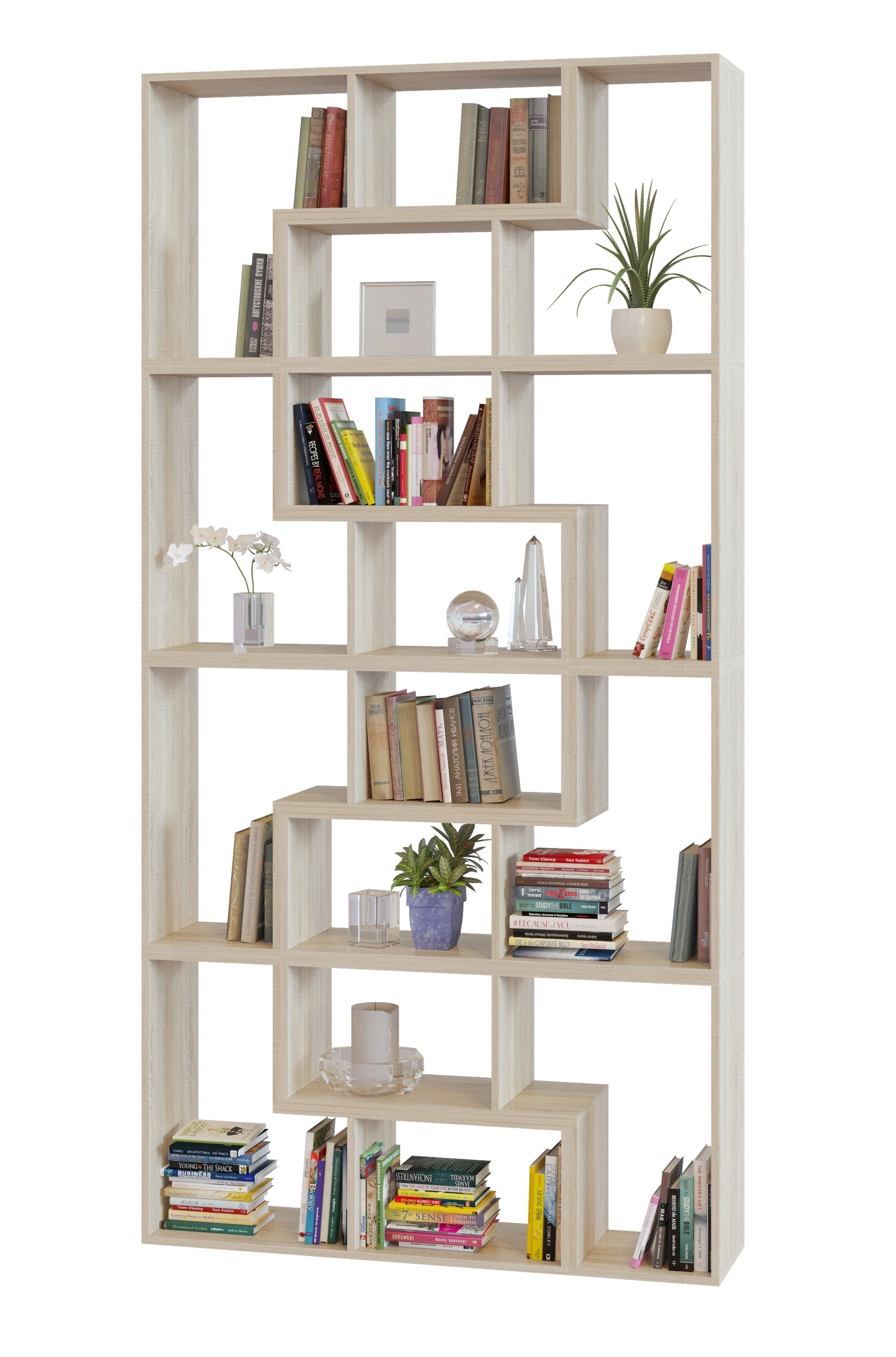 Высокий стеллаж органично впишется практически в любой интерьер и позволит создать полезное пространство для расстановки книг, журналов, коллекций и любимых мелочей. Нетривиальная геометрия открытых полочек понравится тем, кто ищет что-то нестандартное для меблировки гостиной, детской комнаты, домашнего кабинета или офисного помещения.