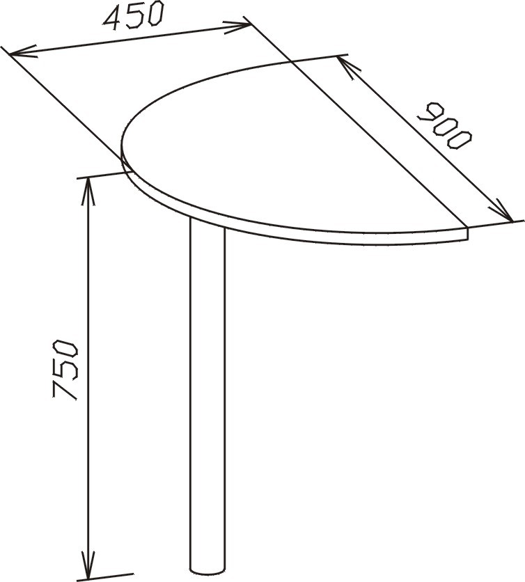 Изготавливается из ЛДСП толщиной 22 мм, края обработаны кромкой ПВХ 2 мм. Опора — металл.