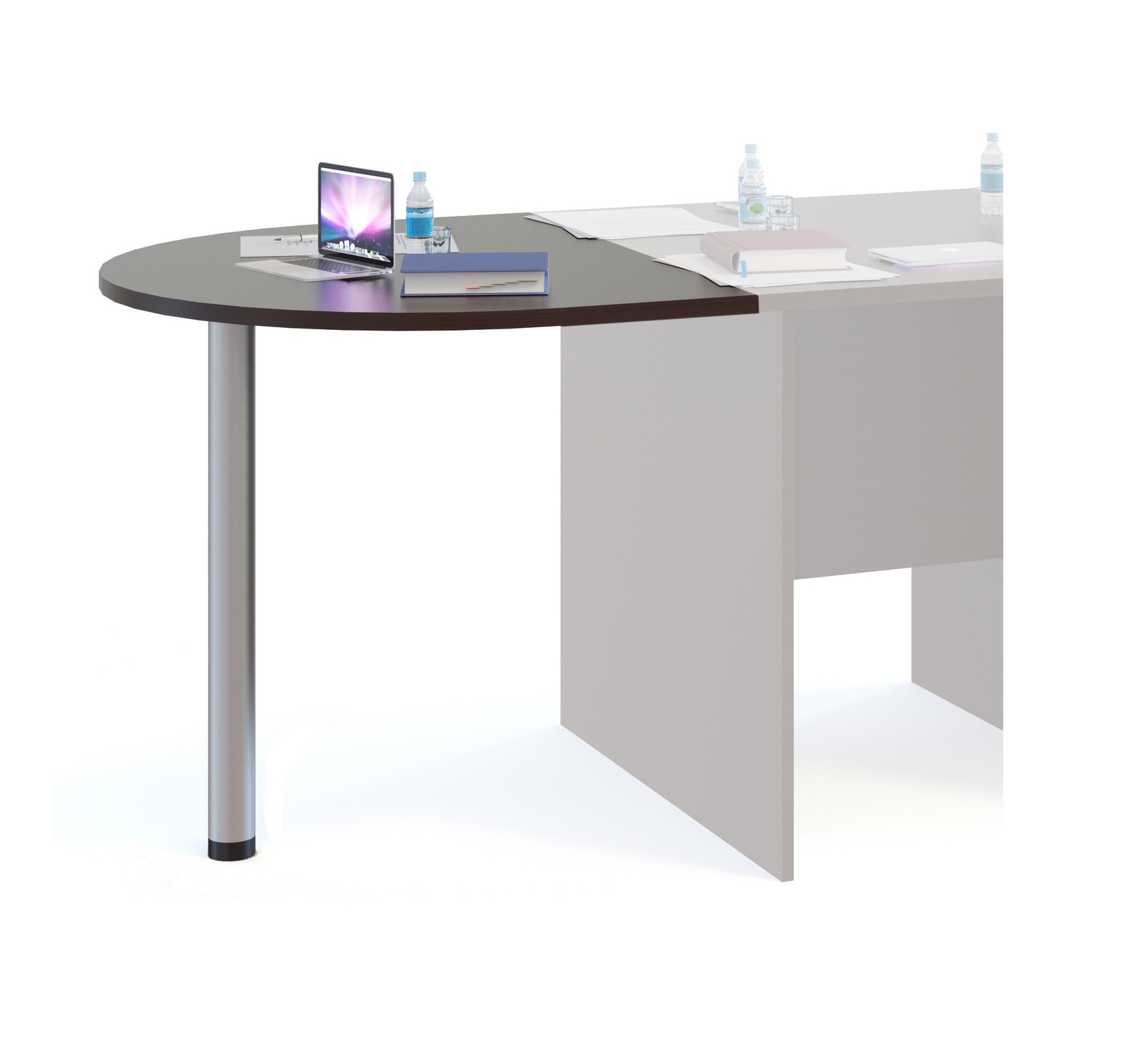 Брифинг-приставка (ВхШхГ): 750 х 900 х 450 мм. Устанавливается к основном рабочему столу или к столу для переговоров. Служит для увеличения полезного пространства. Устанавливается на металлическую опору.