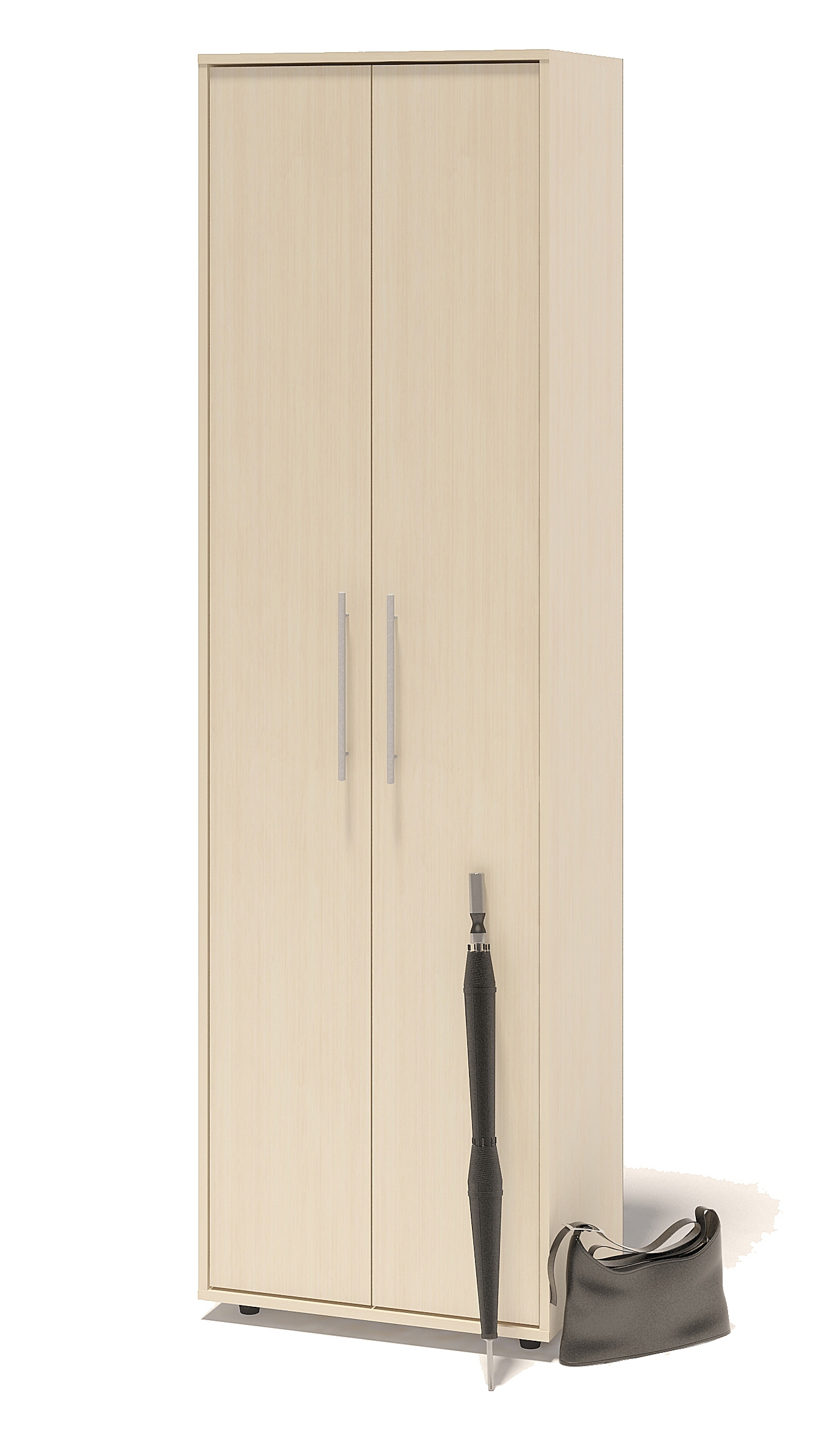 Шкаф для одежды, шириной 600 мм. Шкаф оборудован двустворчатыми дверями. Внутри шкафа расположены две полки и выдвижная вешалка.