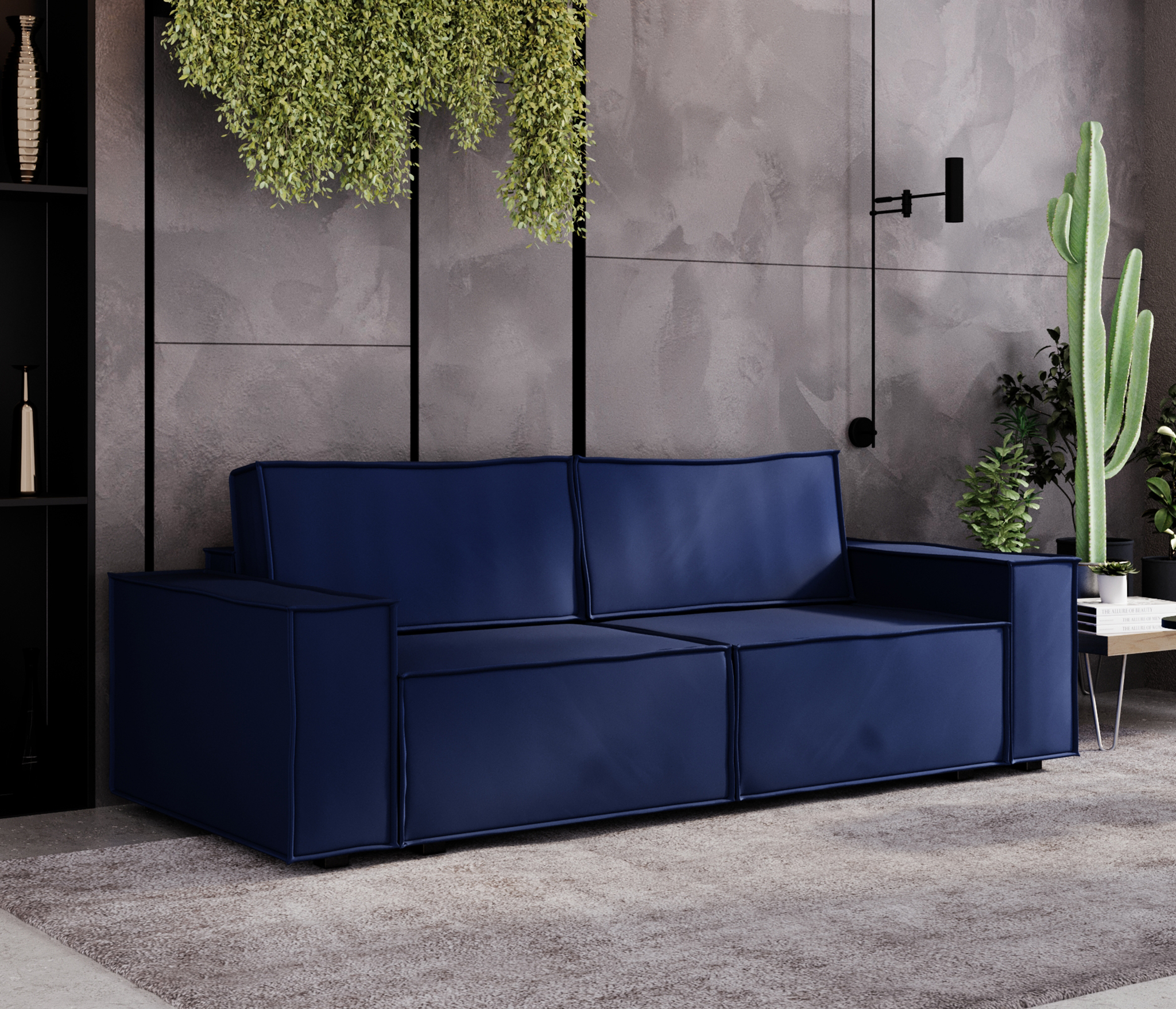 Диван выполнен из однотонного велюра без «пальчикового» эффекта.Antistratching effect позволяет ткани не вытягиваться и долго сохранять первоначальный вид.