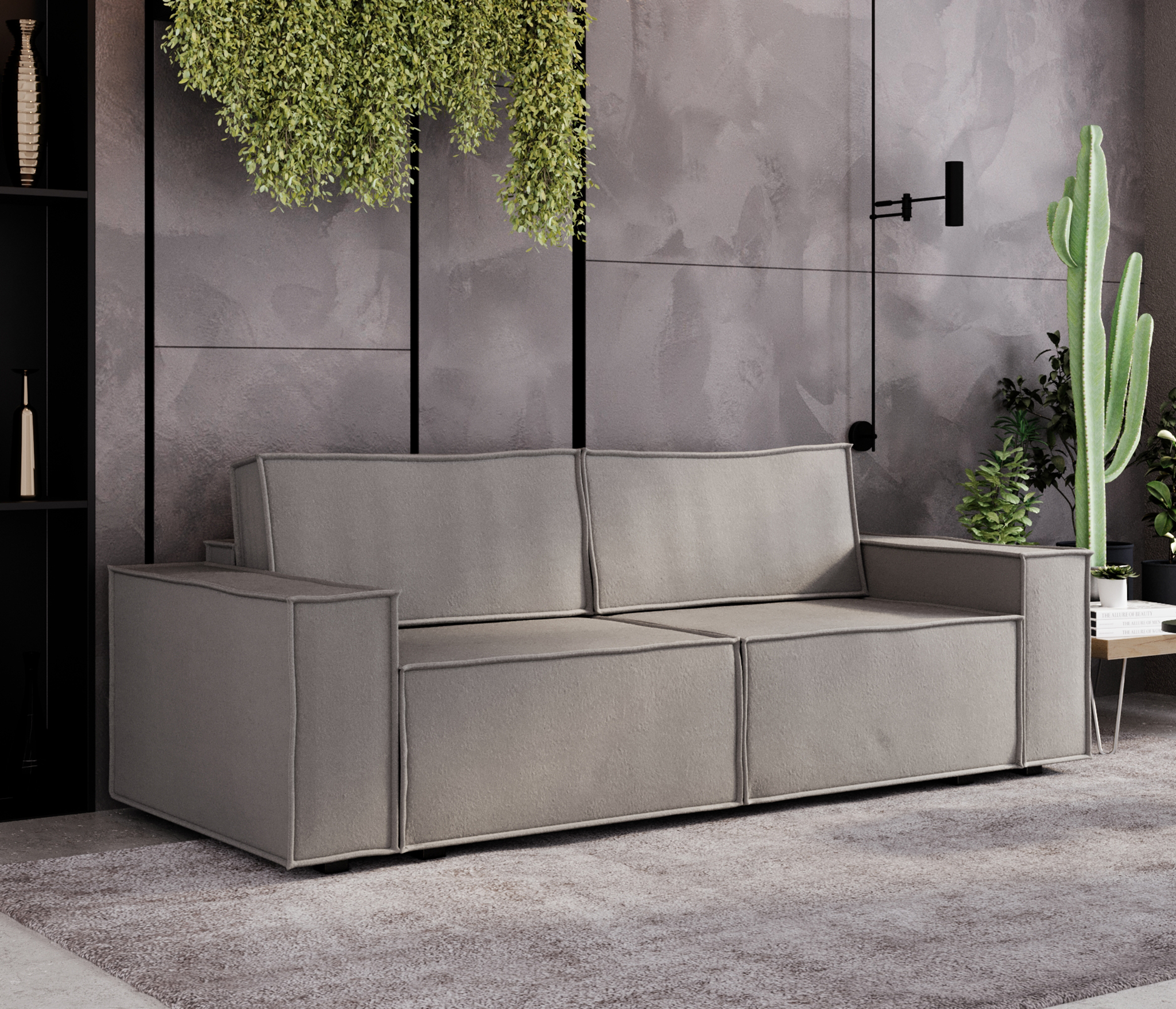 Неоспоримым преимуществом дивана является водоотталкивающее покрытие, а также повышенная износоустойчивость - 100.000 циклов по Мартиндейлу.