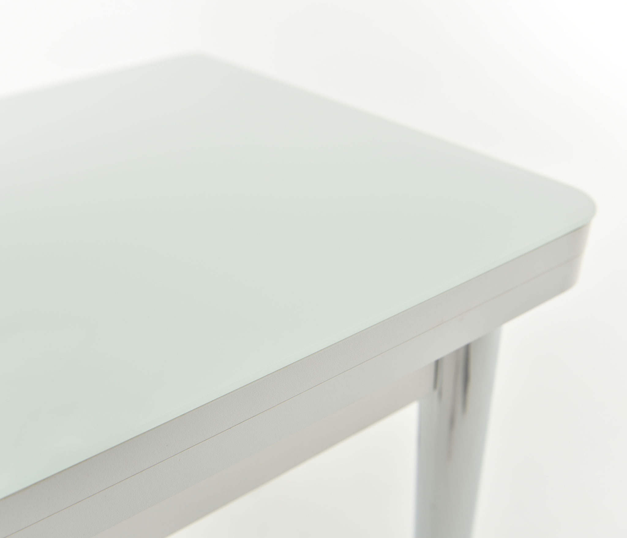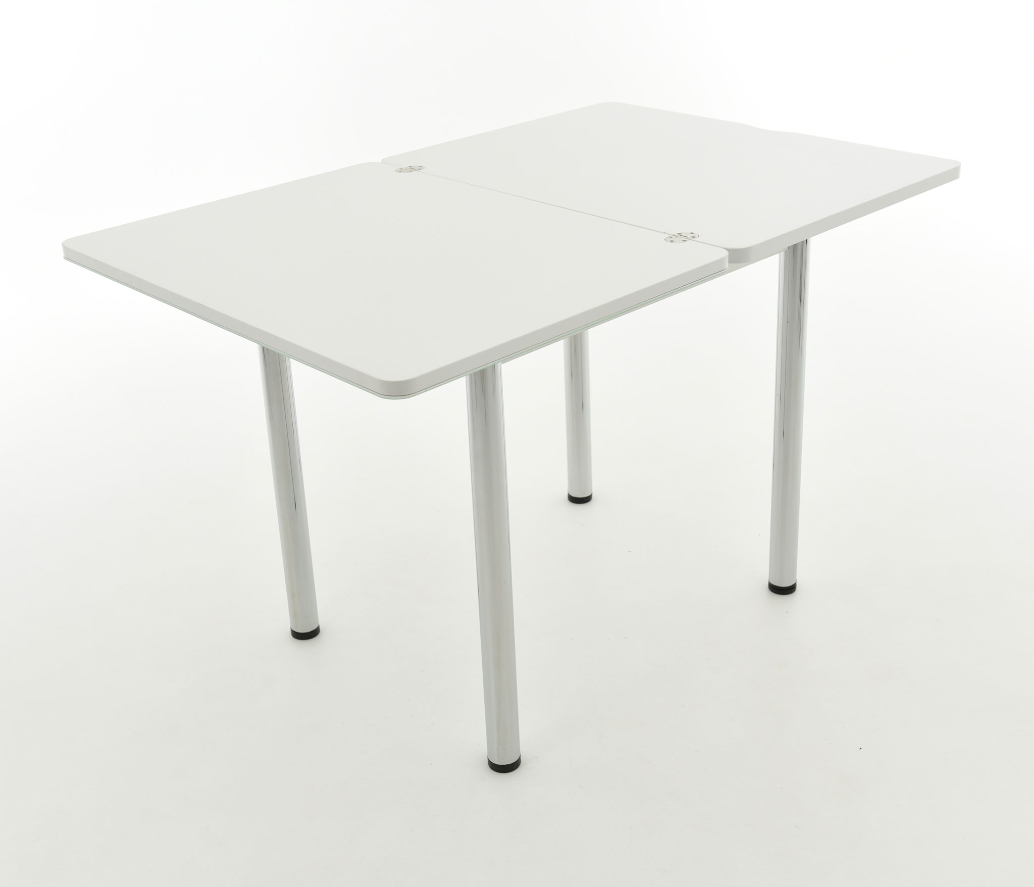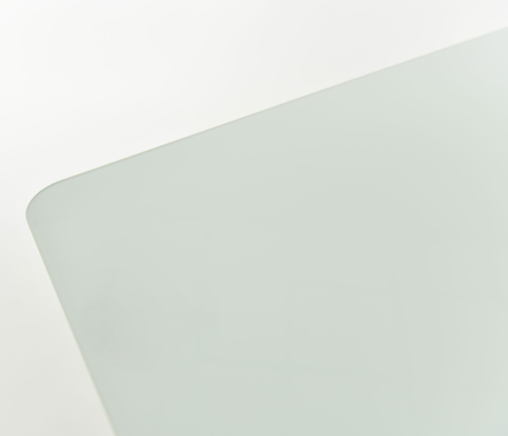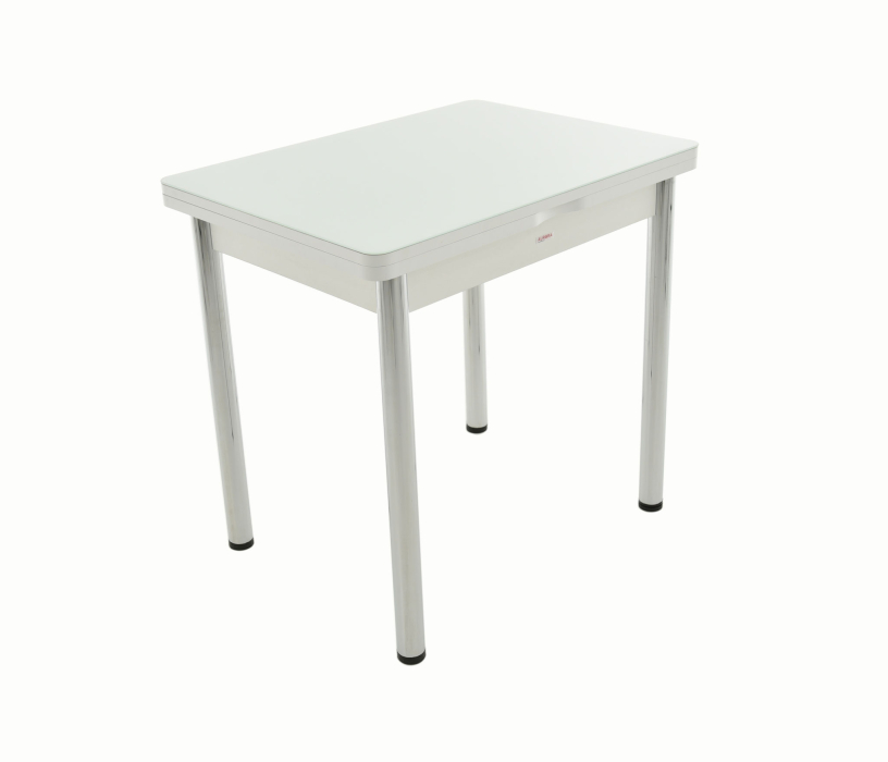 Столешница – состоит из двух частей, верхняя - ЛДСП 18 мм.+ 4 мм закаленное стекло, вторая – ЛДСП 22 мм. При трансформации стола верхняя часть со стеклом откидывается вниз. От повреждения об царги стекло защищает мягкий шлегель, наклеенный на царговый пояс. Столешница прямоугольной формы с заоваленными углами. На верхней части столешницы имеется специальная выемка для удобной трансформации стола. Механизм трансформации – поворотно-раскладной (книжка) Подстолье – ЛДСП 18 мм.