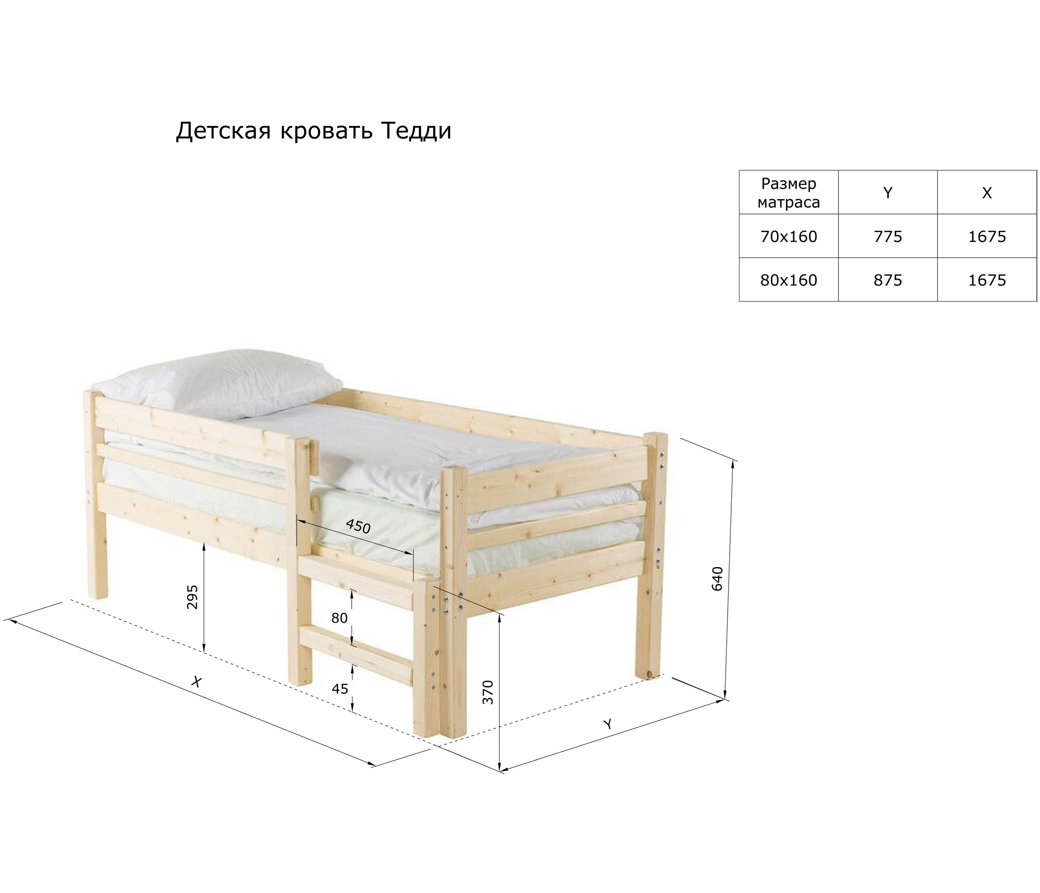 Спальное место составляет 80х160см.