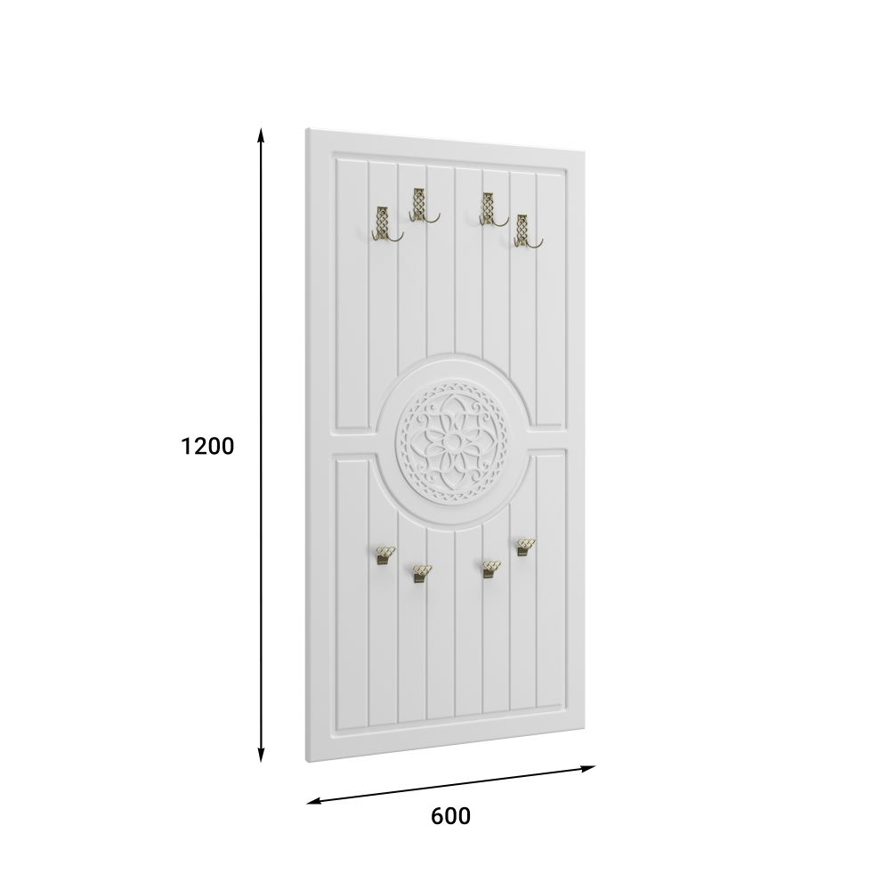 Цвет корпуса/фасада: белый структурный/белое дерево. Вешалка Монблан МБ-50 станет гармоничным дополнением уютного интерьера вашей прихожей. Восемь крючков предназначены для размещения верхней одежды, зонтов, сумок, шарфов и других аксессуаров.