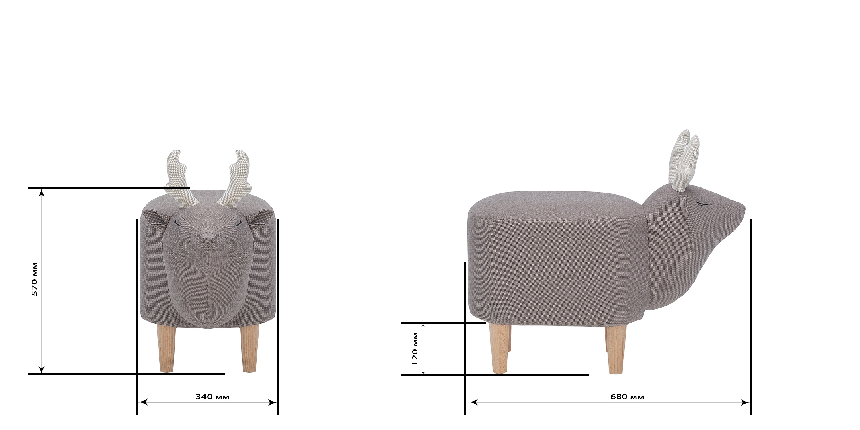 Марал или, как его ешё называют, благородный олень. Маленький, мягкий и может жить у вас дома. Это удобный пуф и интересная игрушка для ребёнка. А ещё у оленя плоская спина, и он вполне может быть даже обычным табуретом.