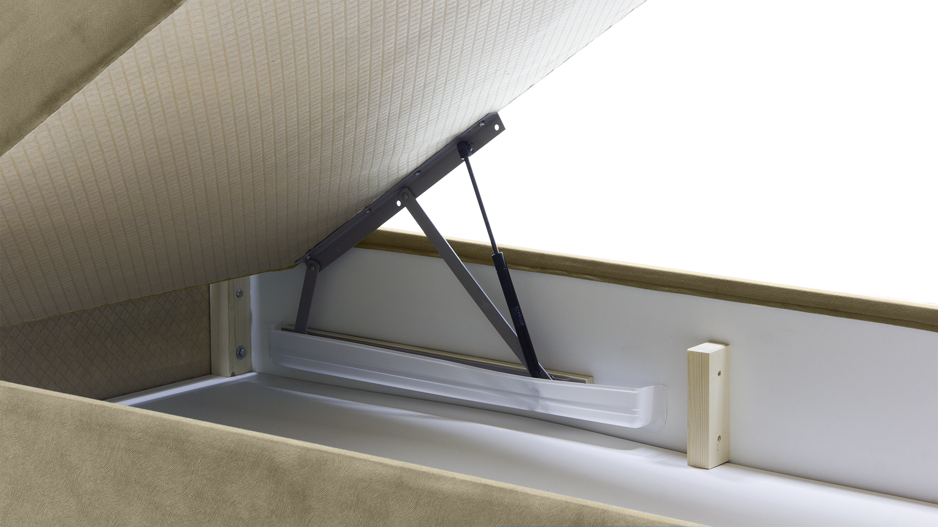 Спальное место оснащено газлифтами для быстрого доступа к большому ящику для хранения.