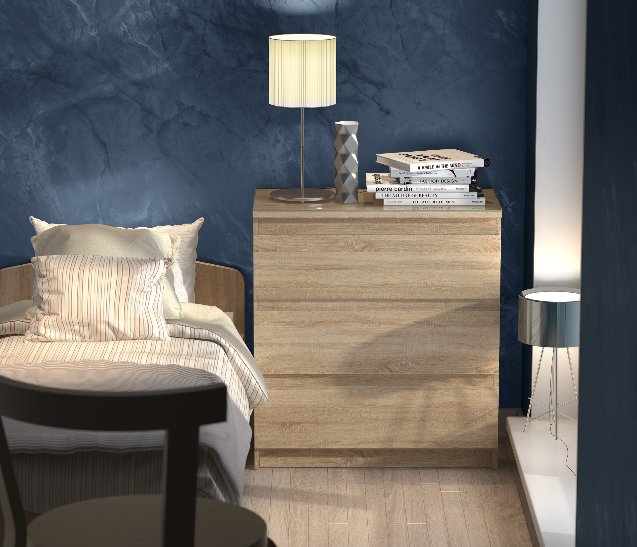 Комод Кито СБ-2347/1 – это оптимальное решение вопроса хранения. Он будет органичным в прихожей, спальне, детской или кабинете.¶Комод Кито имеет довольно компактные габариты – ширина 80 см, высота 86 см и глубина 44 см. Под столешницей расположены три вместительных выдвижных ящика, механизмы которых имеют солидный ресурс.