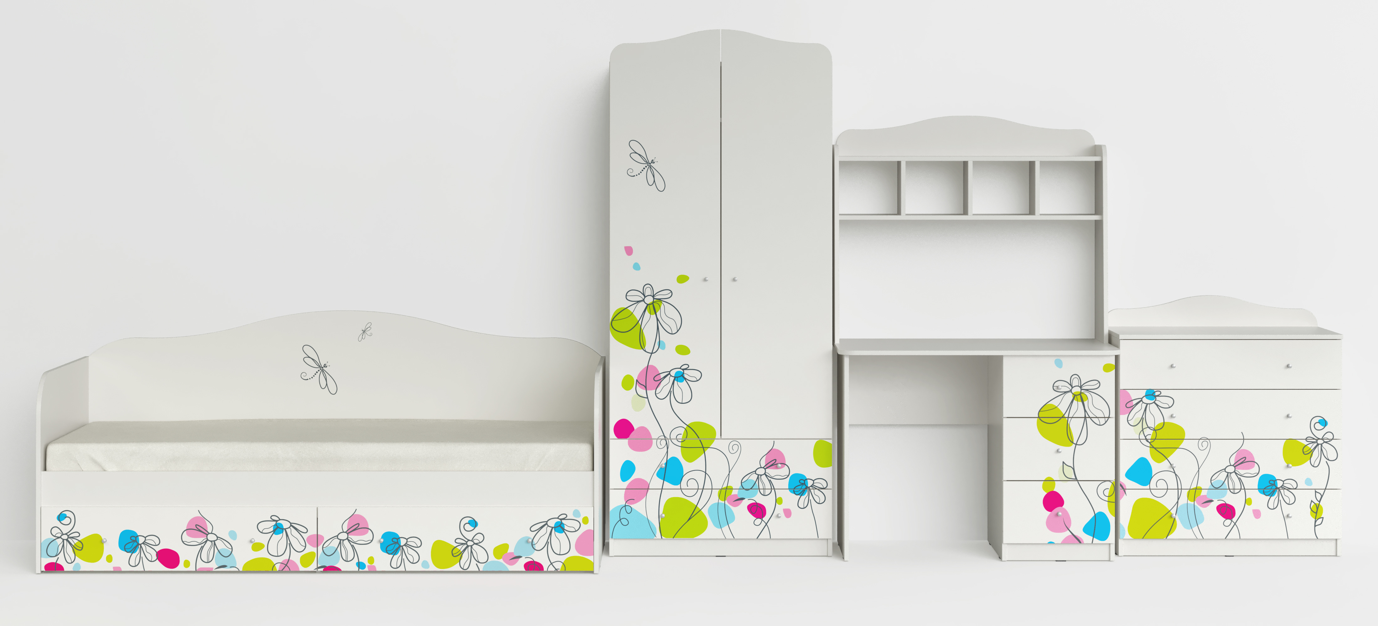 Шкаф из коллекции мебели для детской комнаты. Производство Россия. Изготовлен из ЛДСП с УФ печатью. Шкаф с двумя дверцами и двумя выдвижными ящиками. Внутри имеется штанга и верхняя полка