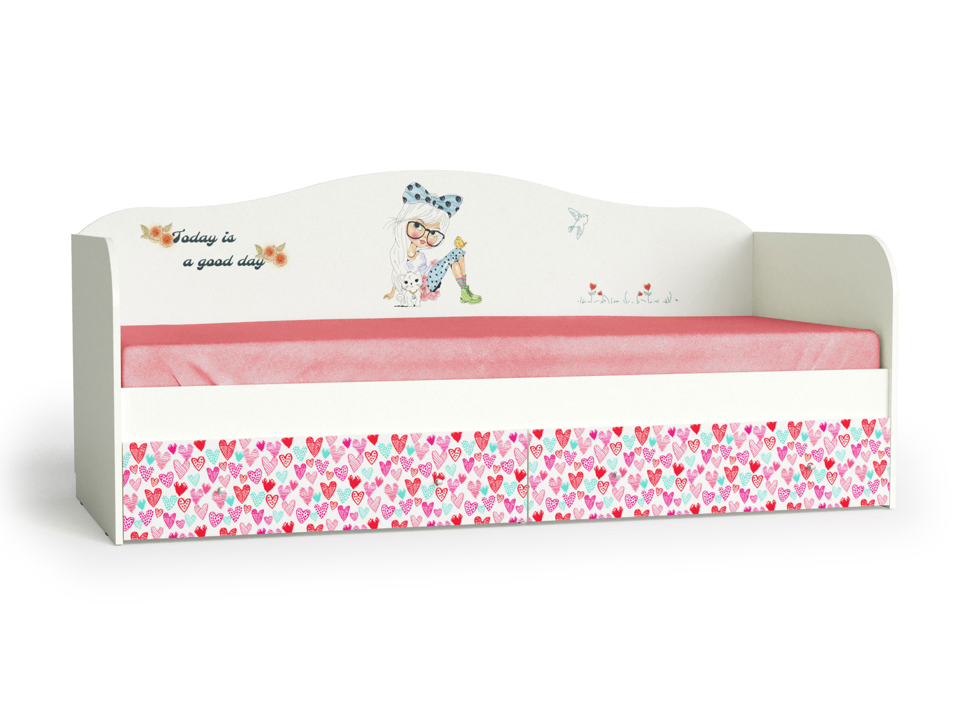 Кровать с выдвижными ящиками из коллекции мебели для детской комнаты. Производство Россия. Изготовлена из ЛДСП с УФ печатью. Направляющие на выдвижных ящиках шариковые полного выдвижения.