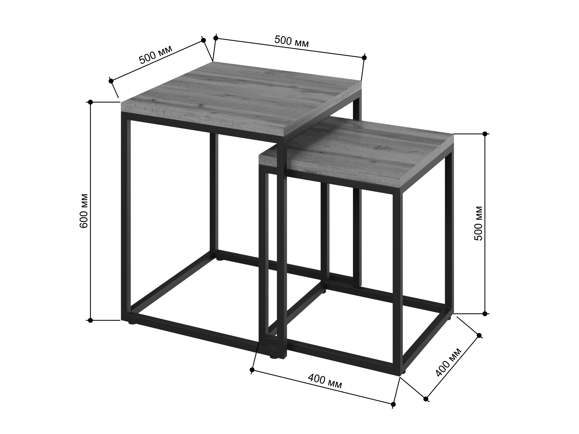 Набор из двух журнальных столиков Айсберг Лофт, каркас выполнен из прочной стали и покрыт порошковой краской. Столешница ЛДСП Egger 26 мм.