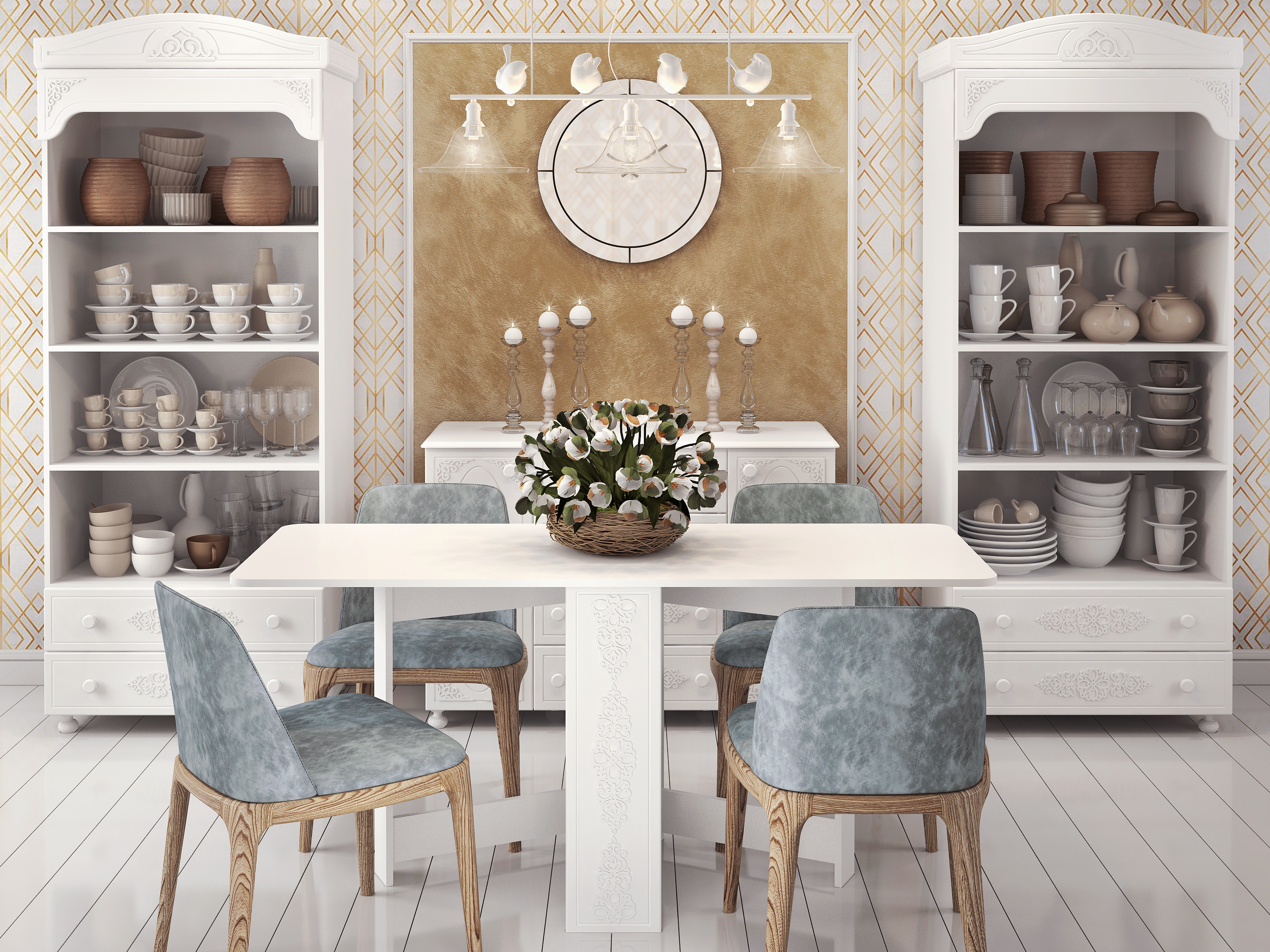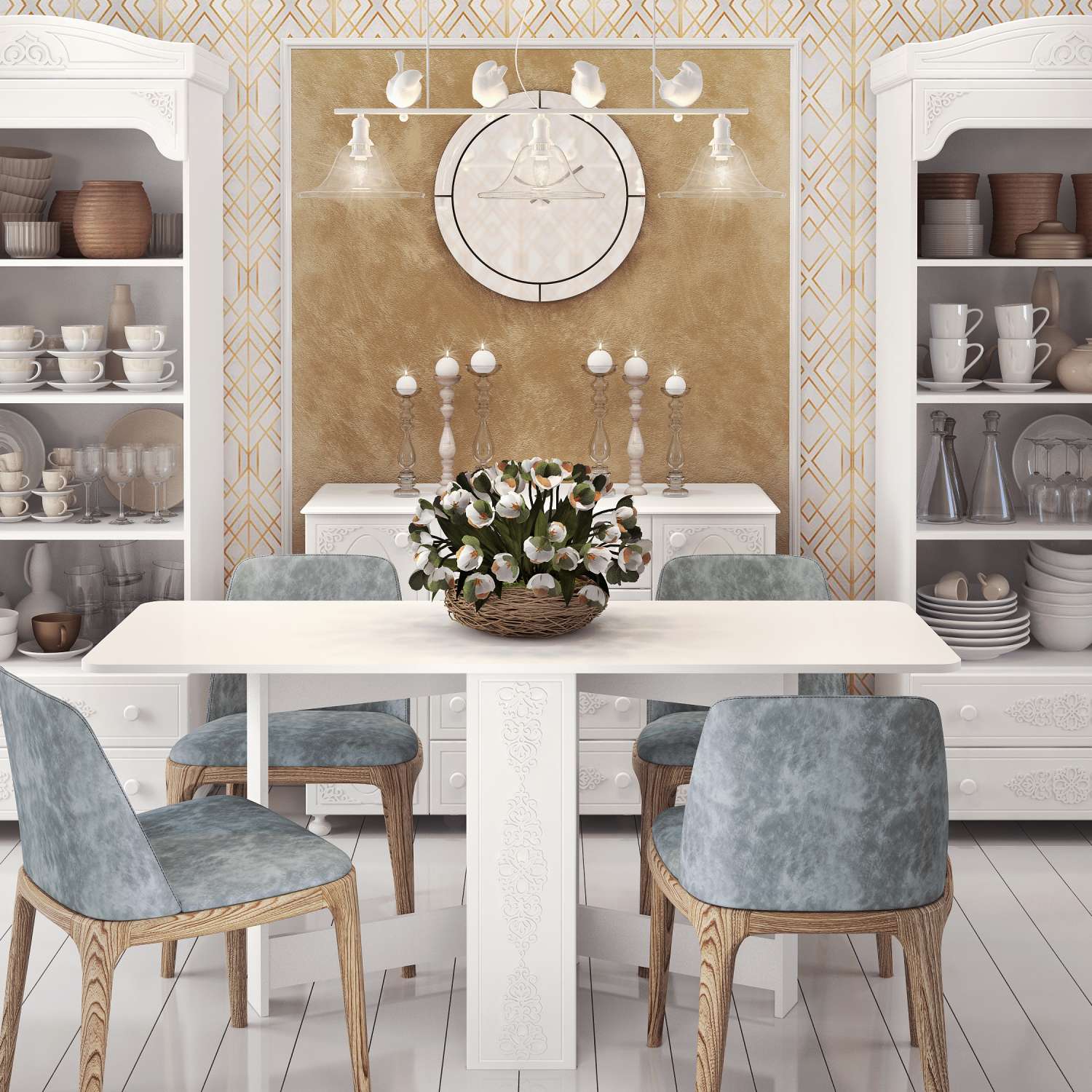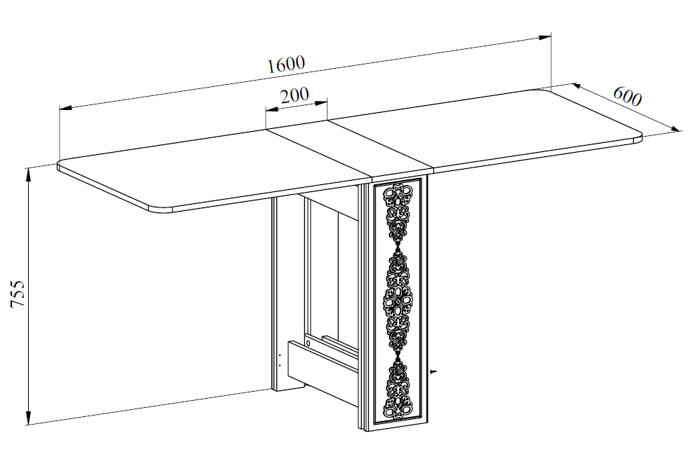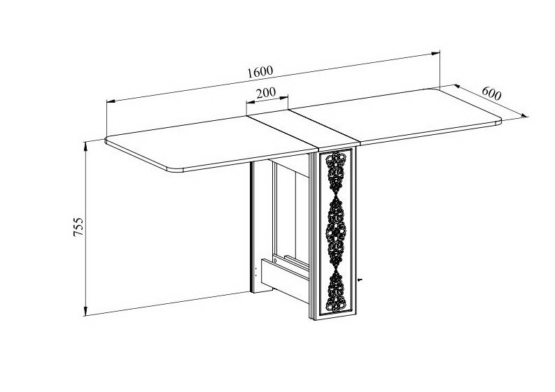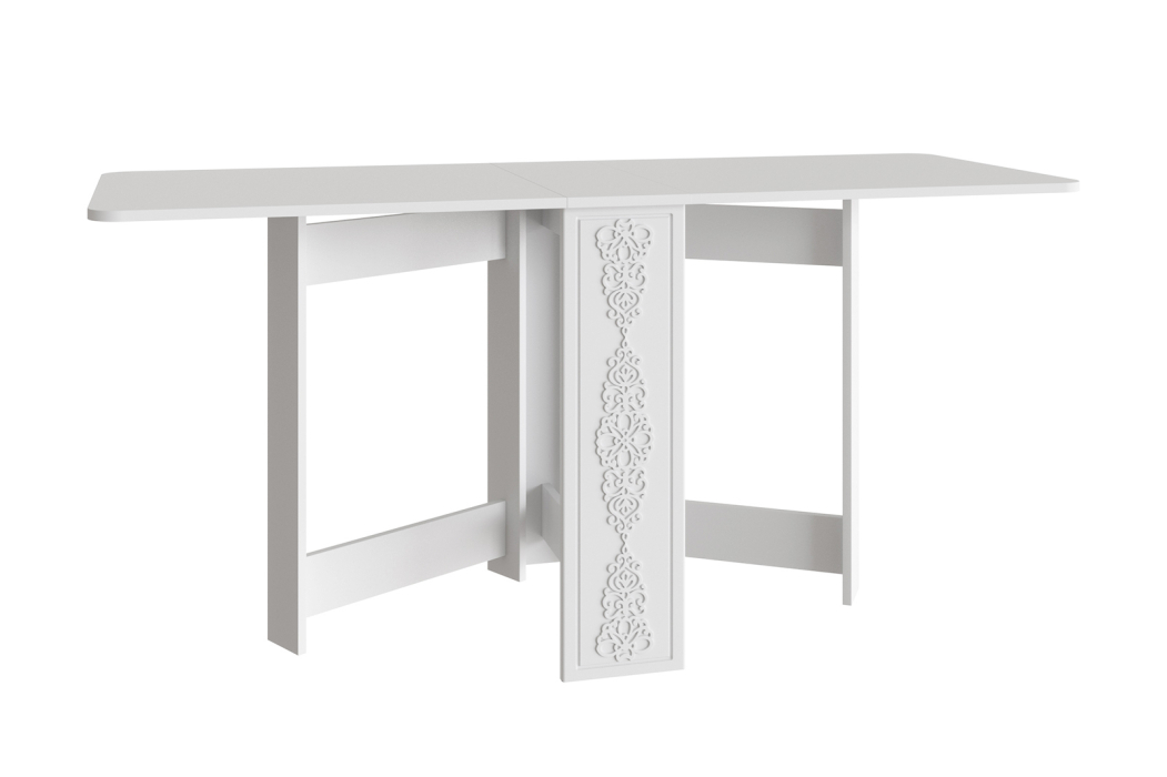 Стол раскладной на шесть персон. Удобный механизм раскладывания. Компактный размер в собранном виде. Мебель изготовлена из качественной ламинированной ДСП 16 мм. В оформлении фасадов МДФ применяется уникальная технология нанесения объемного узора (3D).
