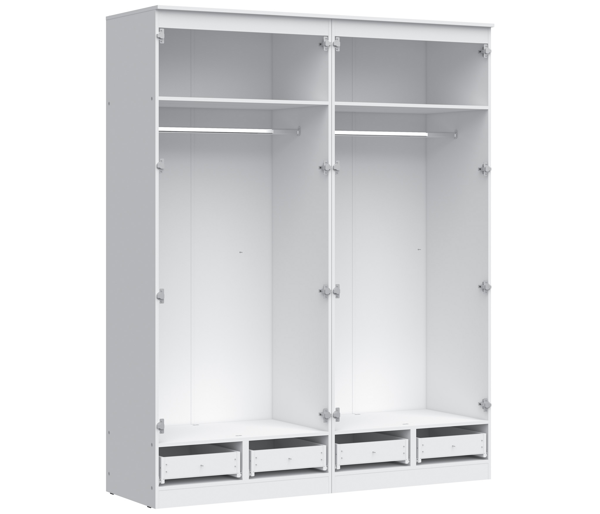 Купили два шкафа. Нужны были белые и только со штангами. Полки вверху вместительные. Ящики выдвижные удобные. Отличные зеркала в полный рост! Пользуемся уже несколько лет. Нареканий к мебели за это время не появилось. Отлично "пережили" переезд на другую квартиру. Разобрали и собрали снова. Все в порядке.