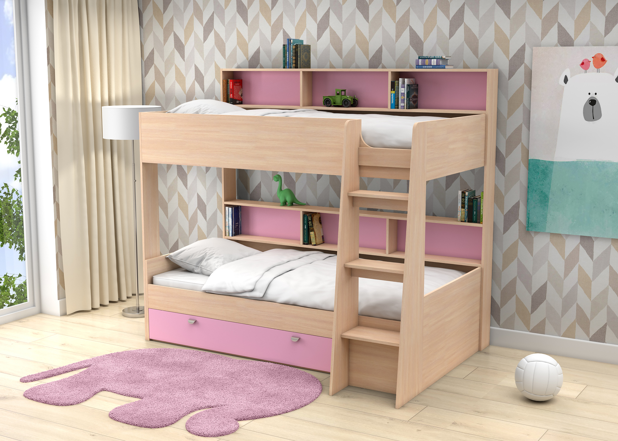 Отзывы о Столплит Двухъярусная кровать Golden Kids 1 дуб молочный Розовый