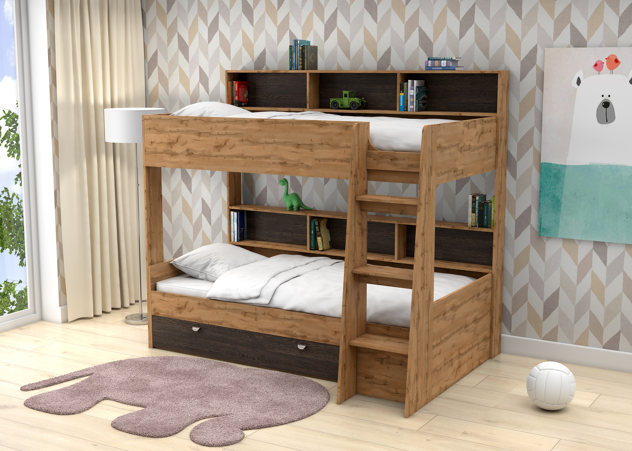 Двухъярусная кровать Golden Kids 1 дуб вотан (Венге)