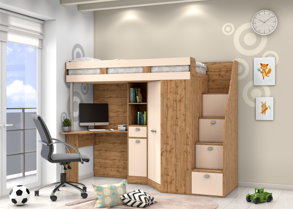 Кровать чердак Golden Kids 6 дуб вотан (Бежевый)
