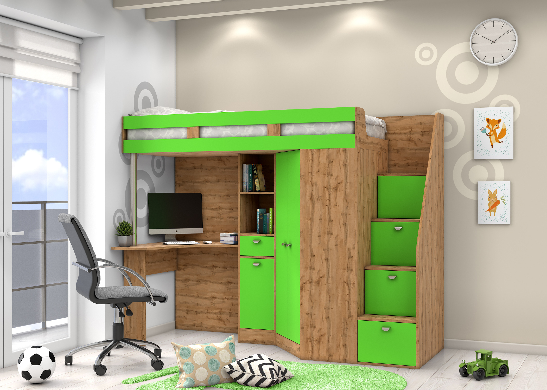 Кровать чердак Golden Kids 6 дуб вотан (Зеленый)