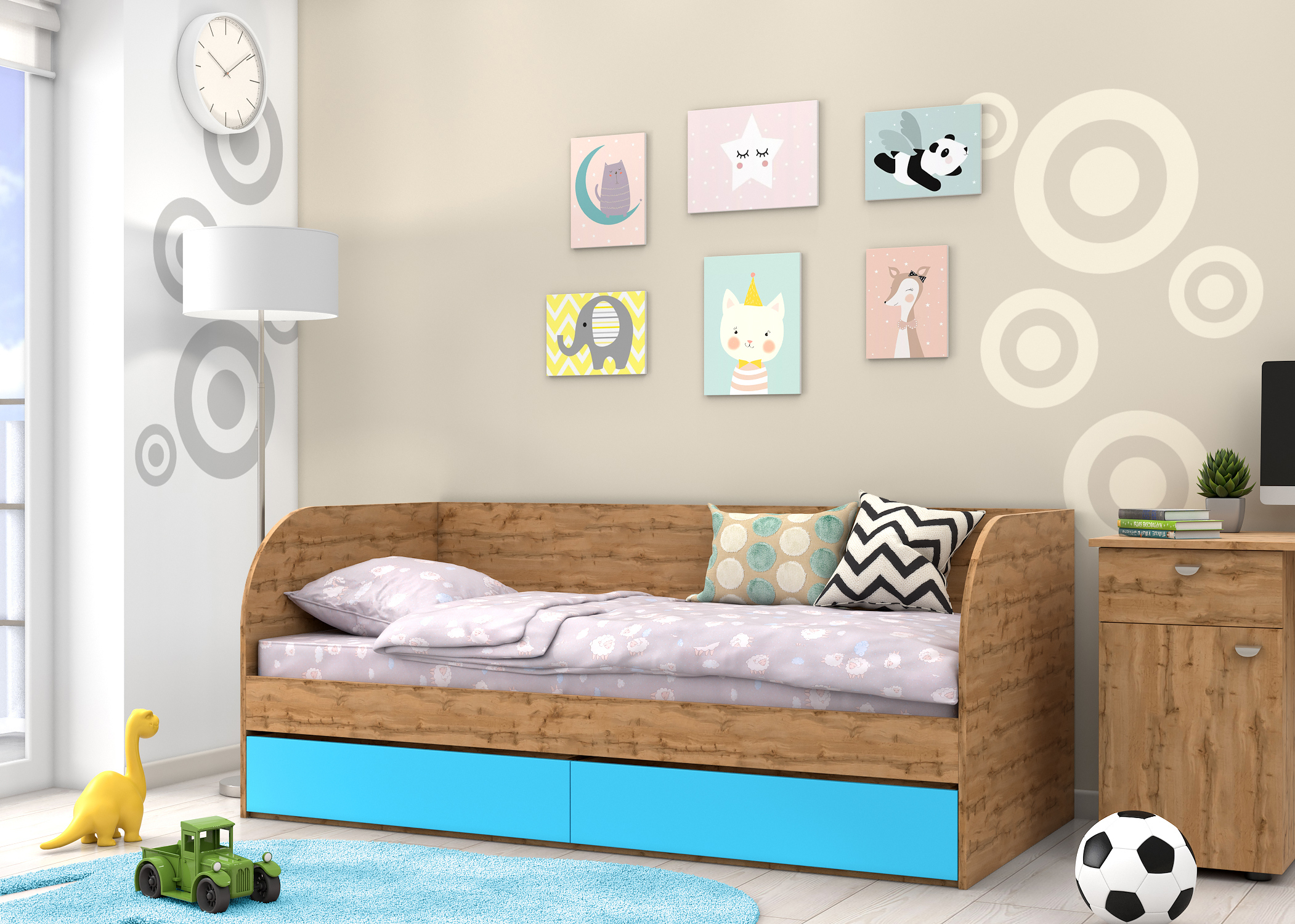 Детская кровать Golden Kids 7 дуб вотан (Голубой)