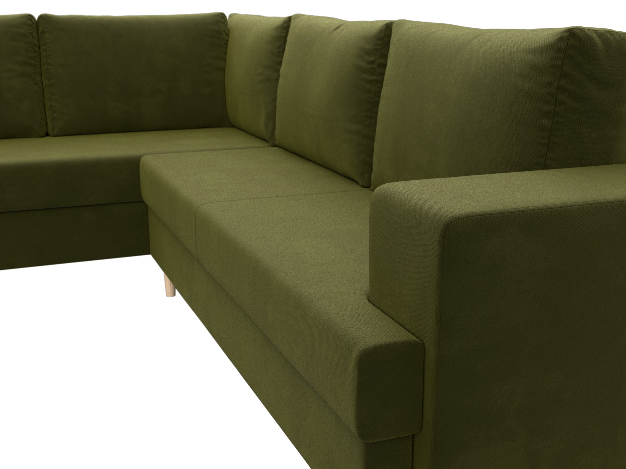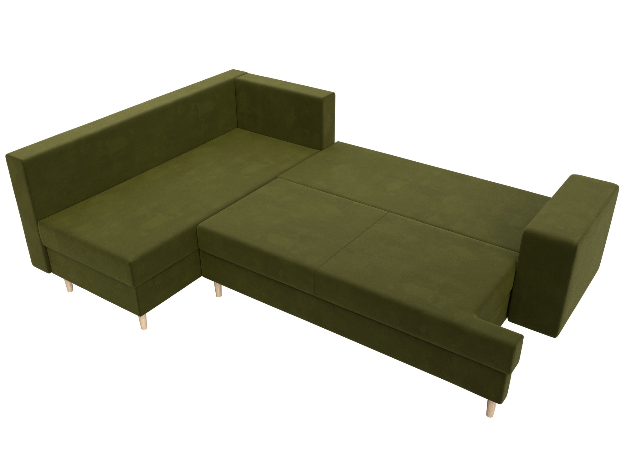 Механизм раскладки: еврокнижка. Превратить угловой диван в кровать можно за два шага. Первый – потяните за нижнюю часть сиденья, оно легко выкатится вперед по направляющим. Второй – опустите спинку в нишу.
