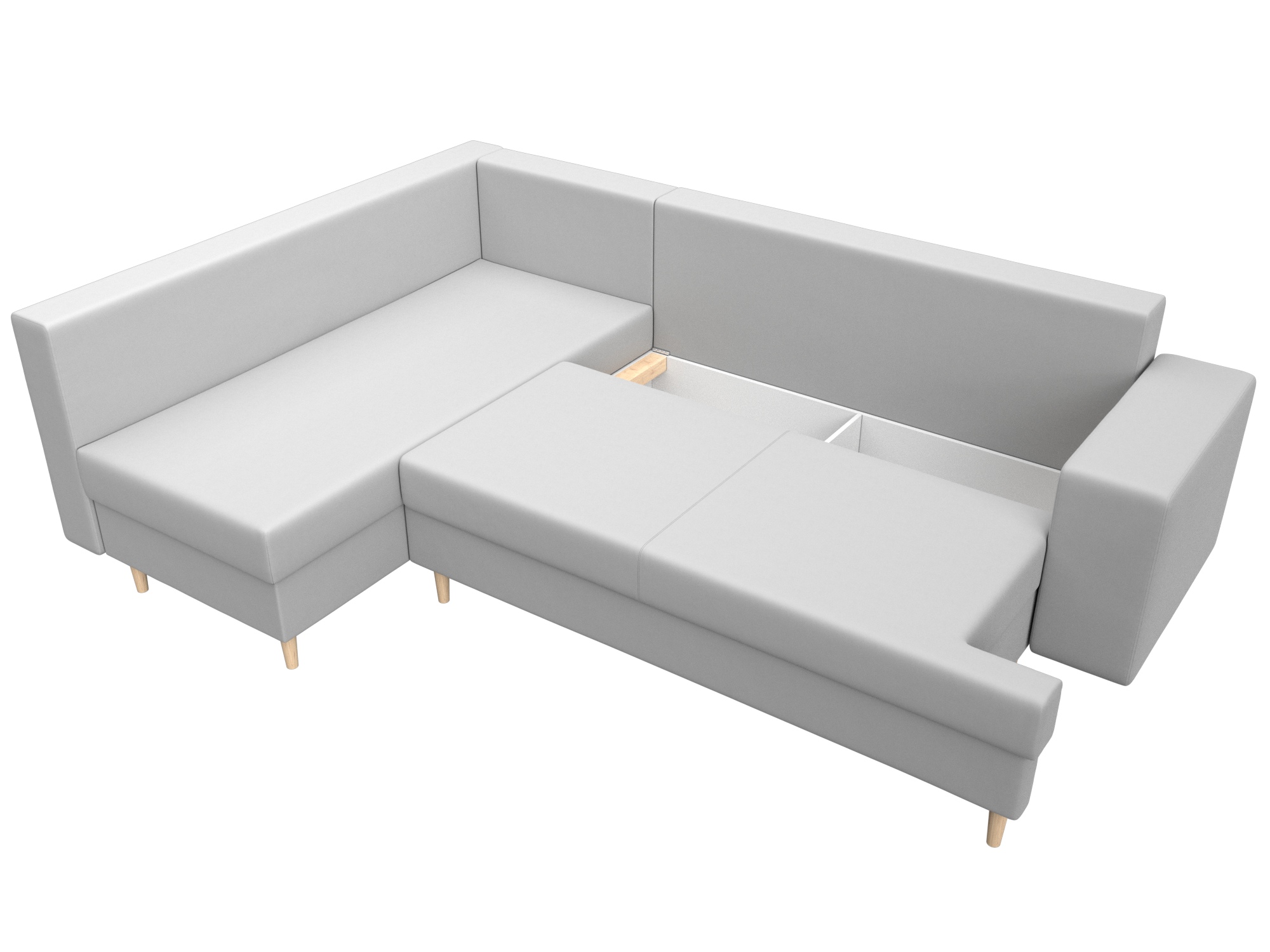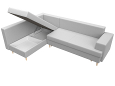 Механизм раскладки: еврокнижка. Превратить угловой диван в кровать можно за два шага. Первый – потяните за нижнюю часть сиденья, оно легко выкатится вперед по направляющим. Второй – опустите спинку в нишу.