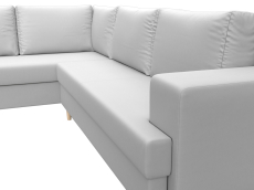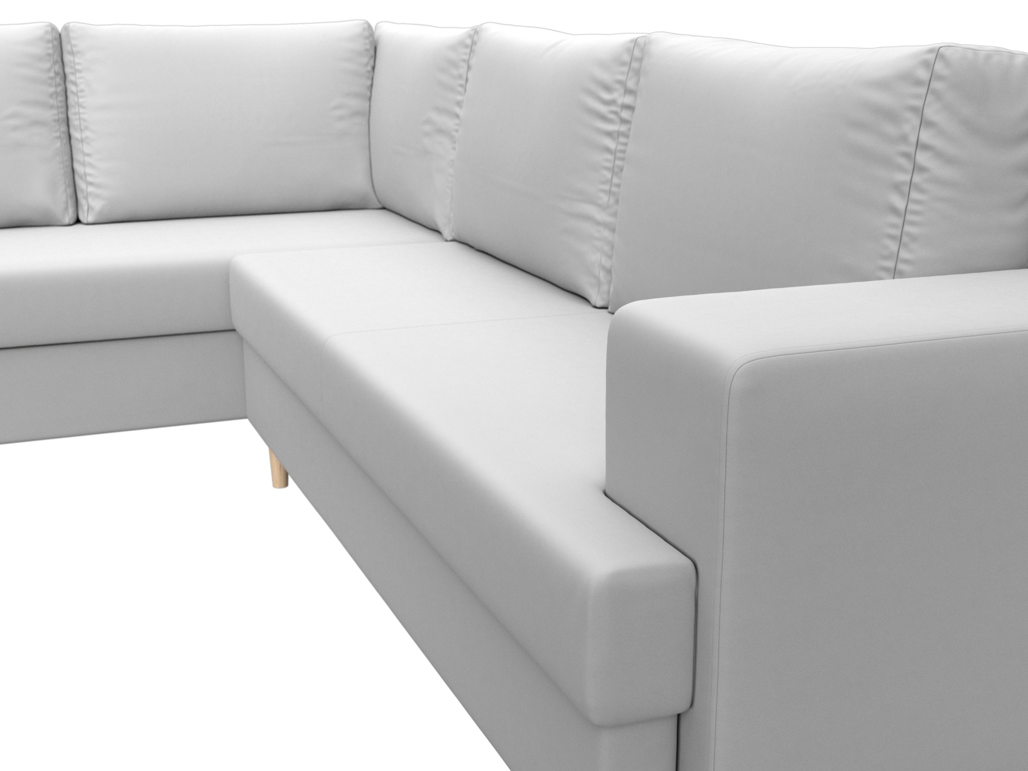 Четырехместный угловой диван Сильвана украсит своим присутствием любую гостиную или офис. Классический дизайн смотрится аккуратно и изысканно. Мягкие подушки, дополняющие спинку, обеспечивают комфортабельность отдыха. Под углом находится вместительный бельевой ящик.