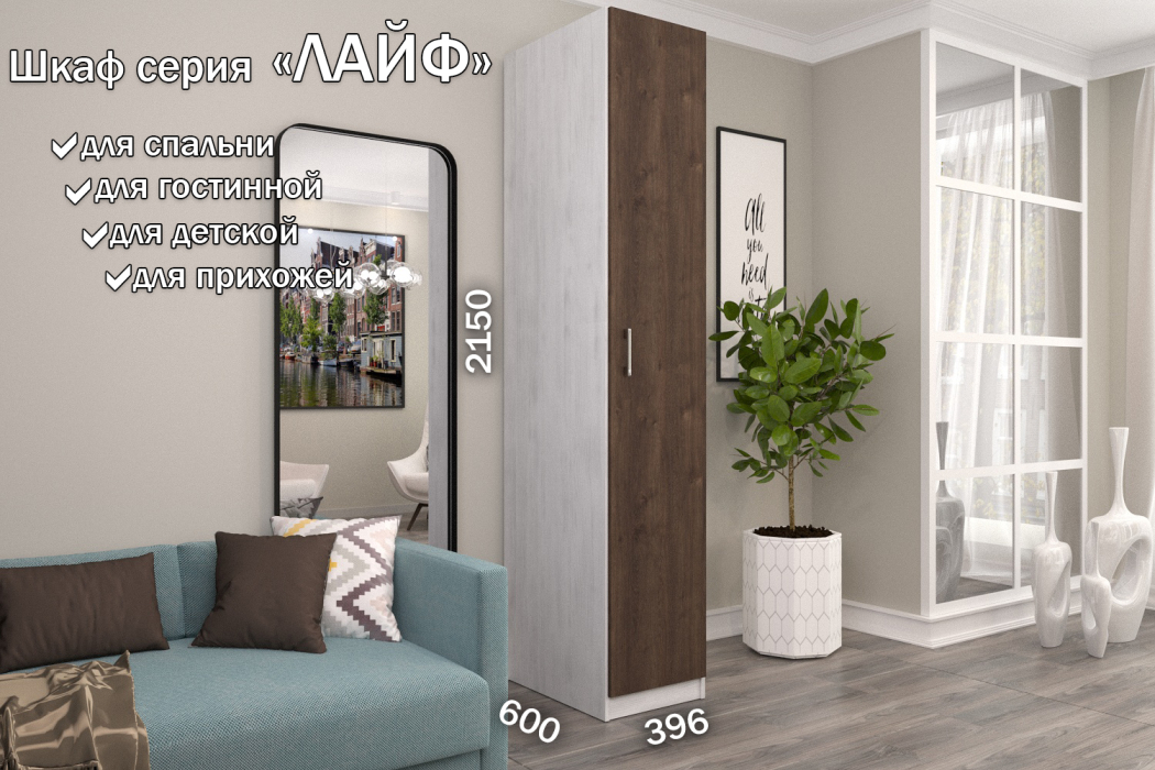 Отзывы о Столплит Распашной шкаф Лайф для одежды 40*60*215 Северное дерево Дуб экспрессив