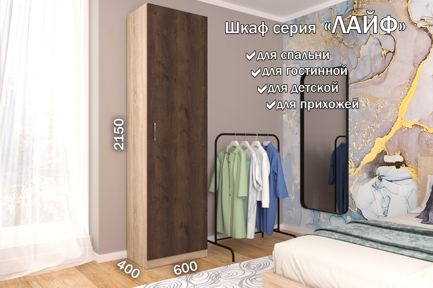 Распашной шкаф Лайф для одежды 60*40*215 Дуб сонома (Дуб экспрессив)