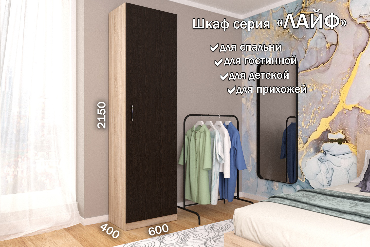 Распашной шкаф Лайф для одежды 60*40*215 Дуб сонома (Венге)